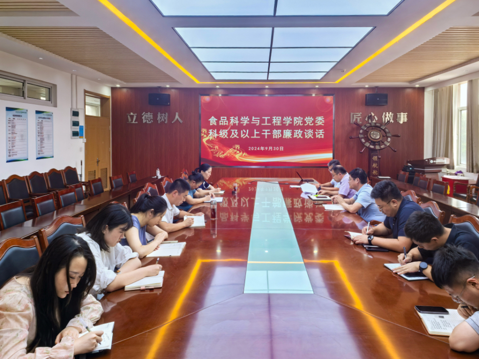 为进一步落实全面从严治党要求,加强对党员干部的教育、监督和管理,教育引导年轻干部廉洁履职,切实做好节日期间党风廉政建设工作。9月30日,食品科学与工程公司党委召开科级及以上干部集体廉政谈话会,公司班子成员、科级干部参加会议,会议由公司党委书记车广杰主持。