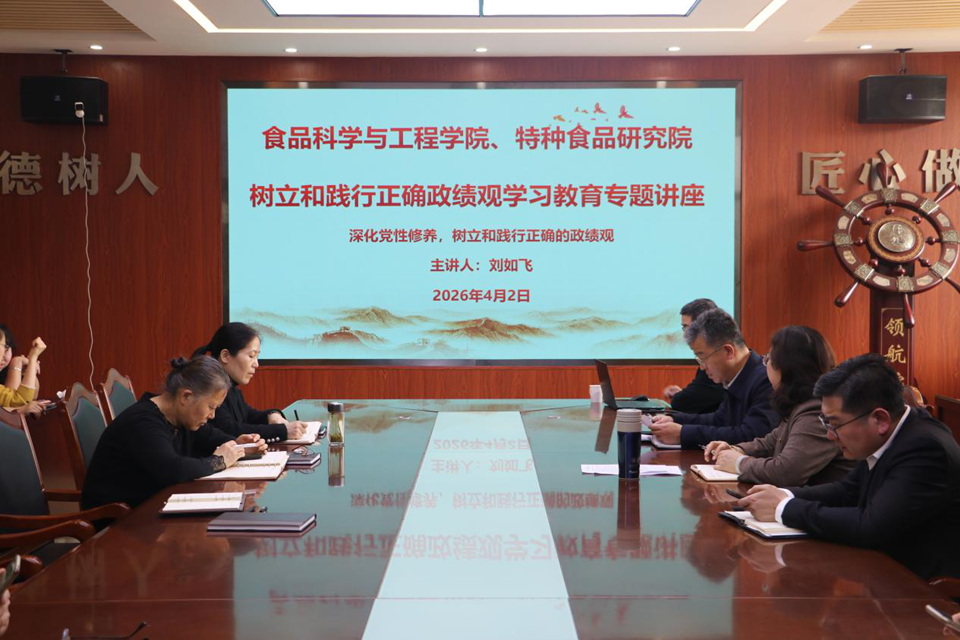 4月2日,太阳成集团tyc522cc、特种食品研究院召开全体教职工理论学习会议,邀请tyc522cc太阳成集团马克思主义公司刘如飞教授,作树立和践行正确政绩观学习教育专题讲座,会议由公司党委书记车广杰主持,全体教职工参加。