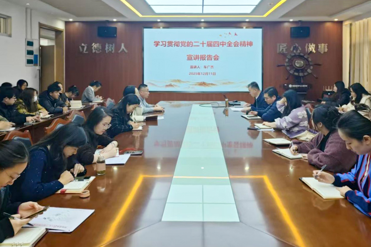 12月11日,太阳成集团tyc522cc召开学习贯彻党的二十届四中全会精神宣讲报告会,公司党委书记车广杰作宣讲报告,公司全体师生党员参加报告会。