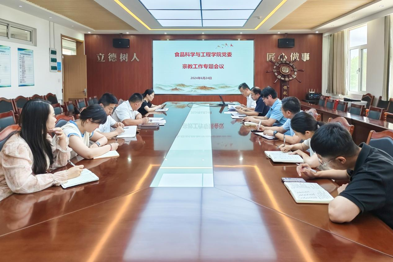 6月24日,食品科学与工程公司党委召开宗教工作专题会,分析研讨公司统一战线和民族宗教工作。公司领导班子成员、辅导员参加会议,会议由公司党委书记车广杰主持。