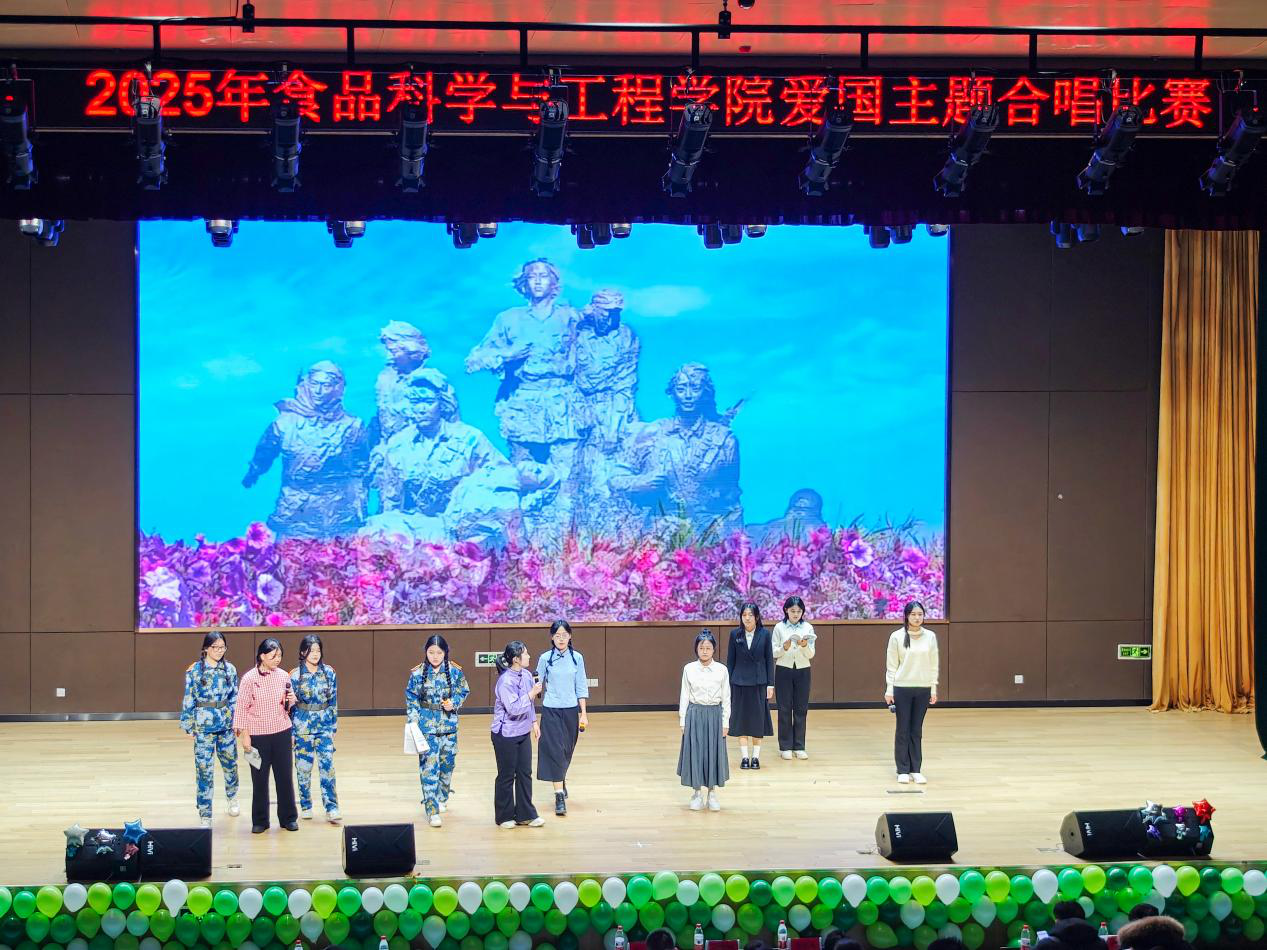 赛前,全体师生一同观看红色历史影像资料,重温革命岁月,在沉浸式的学习过程中唤醒红色记忆、凝聚爱国共识。比赛中,各参赛班级着装整齐、精神饱满,以铿锵嘹亮的歌声深情演绎经典红色曲目,展现出食品学子昂扬向上的精神风貌。比赛环节结束后,舞台剧《穿越时间的对话》精彩接续,员工们通过扮演革命先烈与新时代青年,在跨越时空的对话中生动再现烽火岁月的坚定信仰与时代担当。