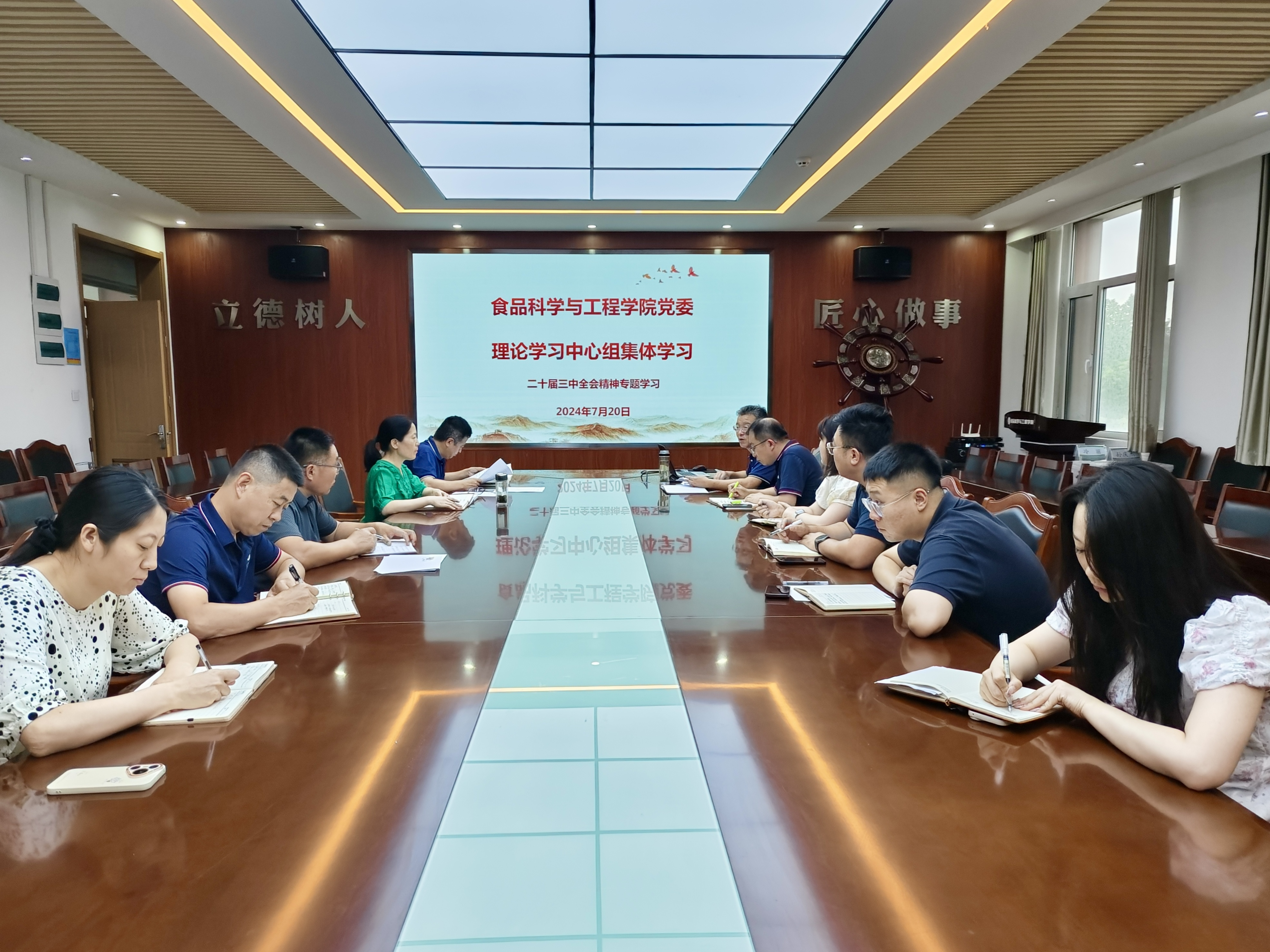 7月20日,食品科学与工程公司党委理论学习中心组(扩大)专题学习党的二十届三中全会精神,公司党委理论学习中心组成员、科级干部以及全体辅导员参加学习,会议由公司党委书记车广杰主持。