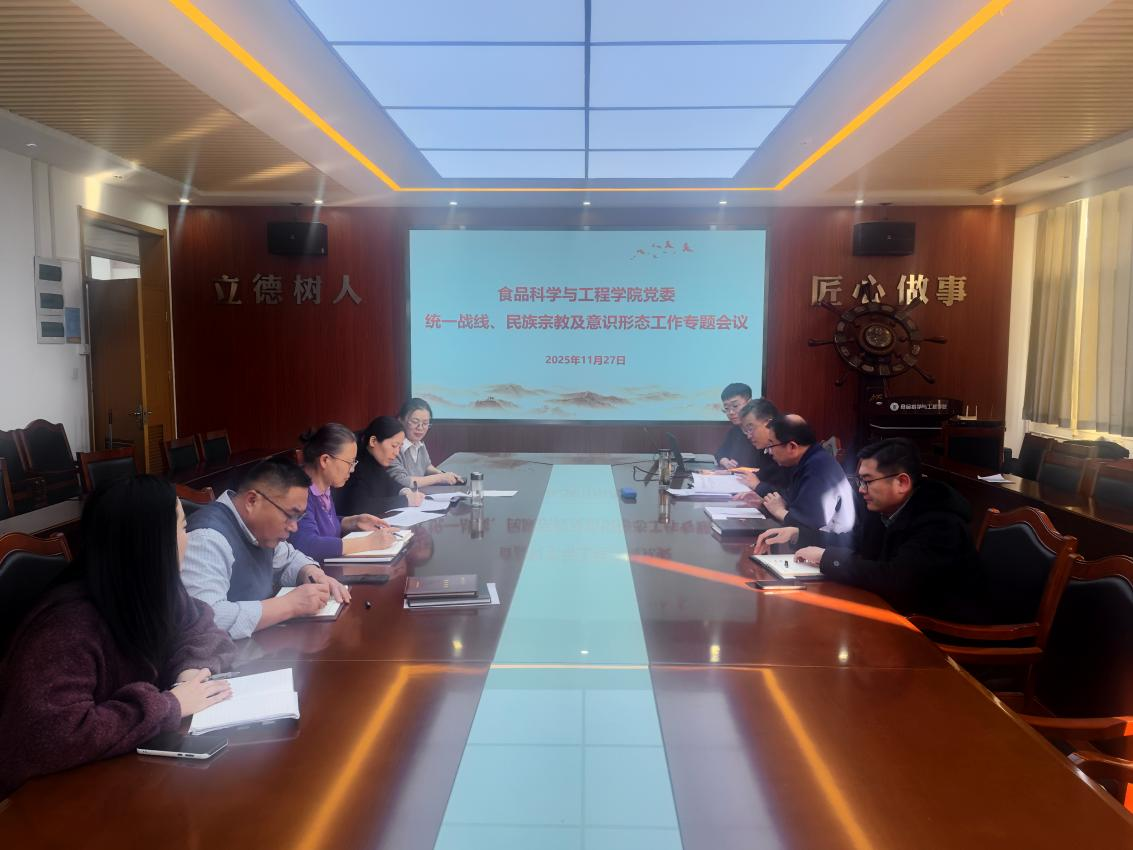 11月27日,食品科学与工程公司党委召开专题会议研究统一战线、民族宗教及意识形态工作,公司党委书记车广杰主持会议,公司领导班子成员、全体科级干部参加会议。