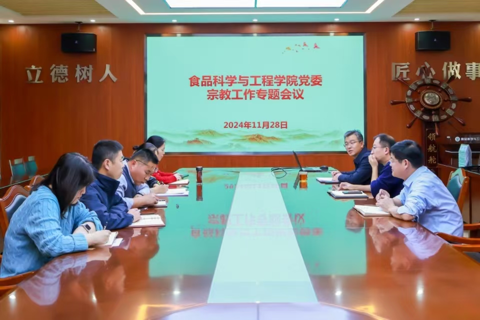 11月28日,食品科学与工程公司党委召开2024年下半年宗教工作专题会议,公司班子成员参加会议,会议由公司党委书记车广杰主持。