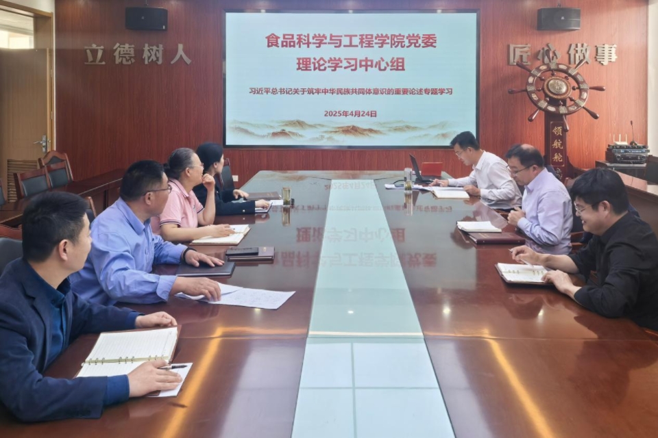 4月24日,食品科学与工程公司党委理论学习中心组在公司会议室开展2025年第六次集体学习,专题学习习近平总书记关于铸牢中华民族共同体意识的重要论述。公司党委书记车广杰主持学习会,公司理论学习中心组全体成员参加。
