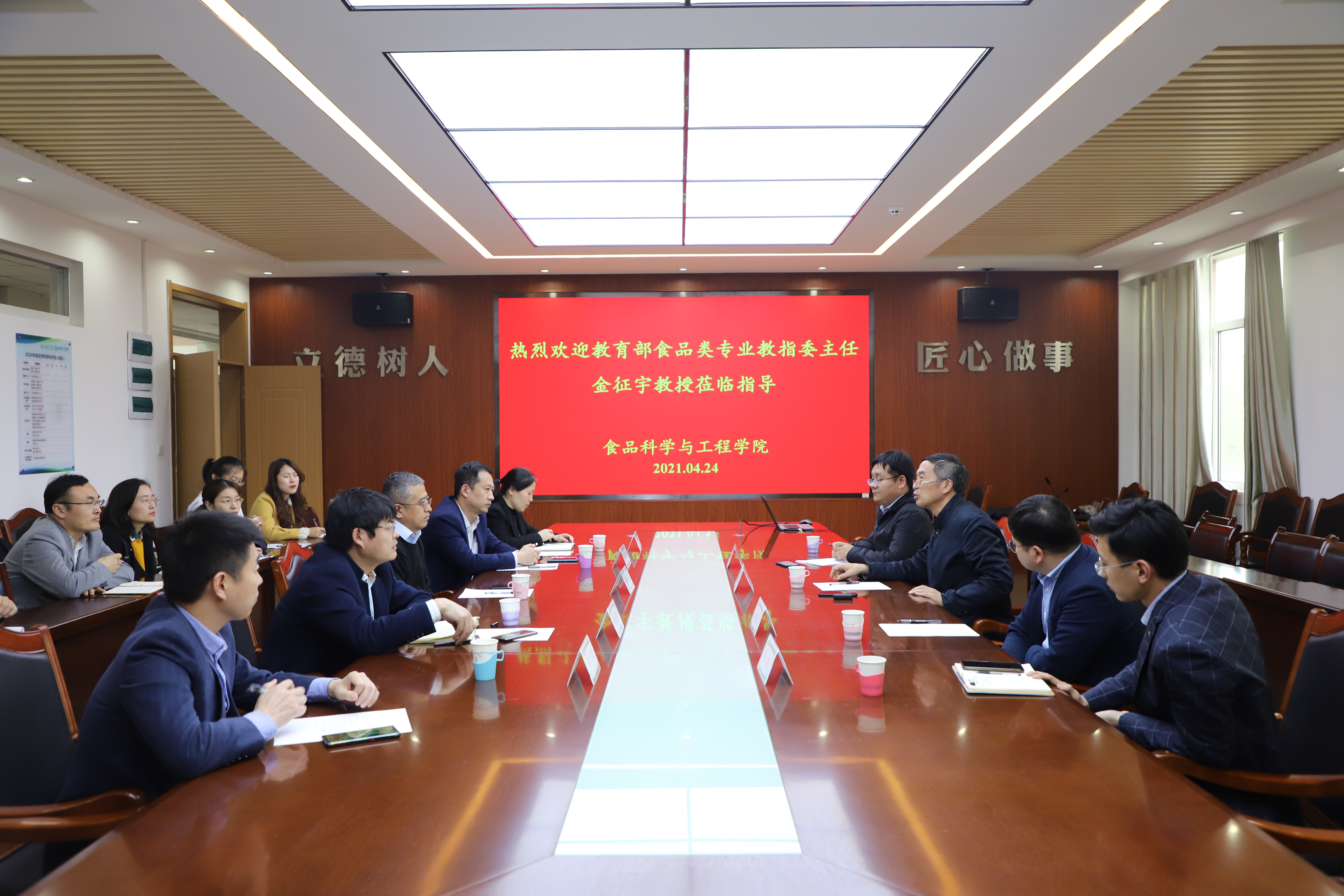 4月24日,教育部高等公司食品科学与工程类专业教学指导委员会主任、工程教育专业认证专家委员会主任委员、江南大学原副董事长金征宇教授一行来访tyc522cc太阳成集团,就国家一流本科专业建设和工程认证工作进行指导并开展专业建设交流会。公司党委书记李宝笃、副董事长赵金山接待了来访客人。