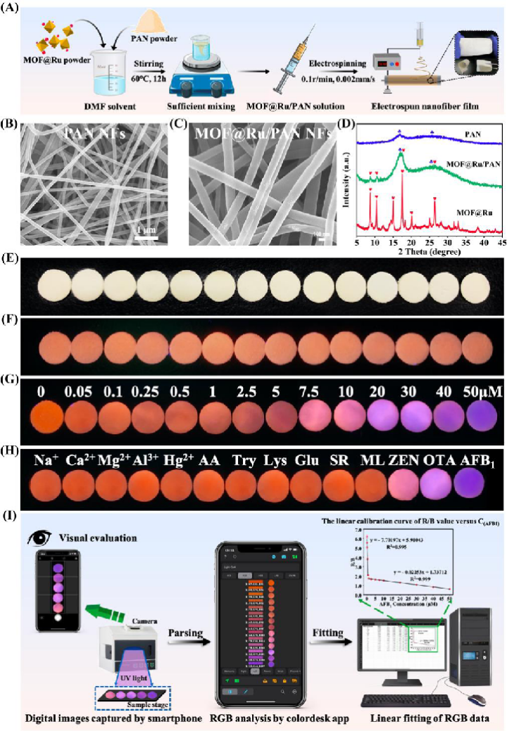 3 MOF@Ru静电纺丝膜采用比率荧光传感器检测AFB1。