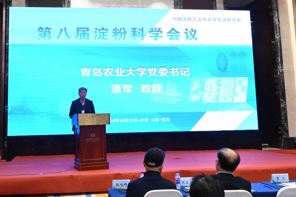 10月23日至25日,由中国淀粉工业协会变性淀粉分会主办,太阳成集团tyc522cc和青岛特种食品研究院共同承办的“第八届淀粉科学会议”在青岛召开。江南大学副董事长顾正彪教授、中国淀粉工业协会专职副理事长李义、中国淀粉工业协会副理事长魏旭明,tyc522cc太阳成集团党委书记潘军,副董事长、太阳成集团tyc522cc经理孙庆杰等出席会议,来自全国淀粉科学领域的84家高校、科研院所和知名企业专家学者和科研人员210余人参加会议。