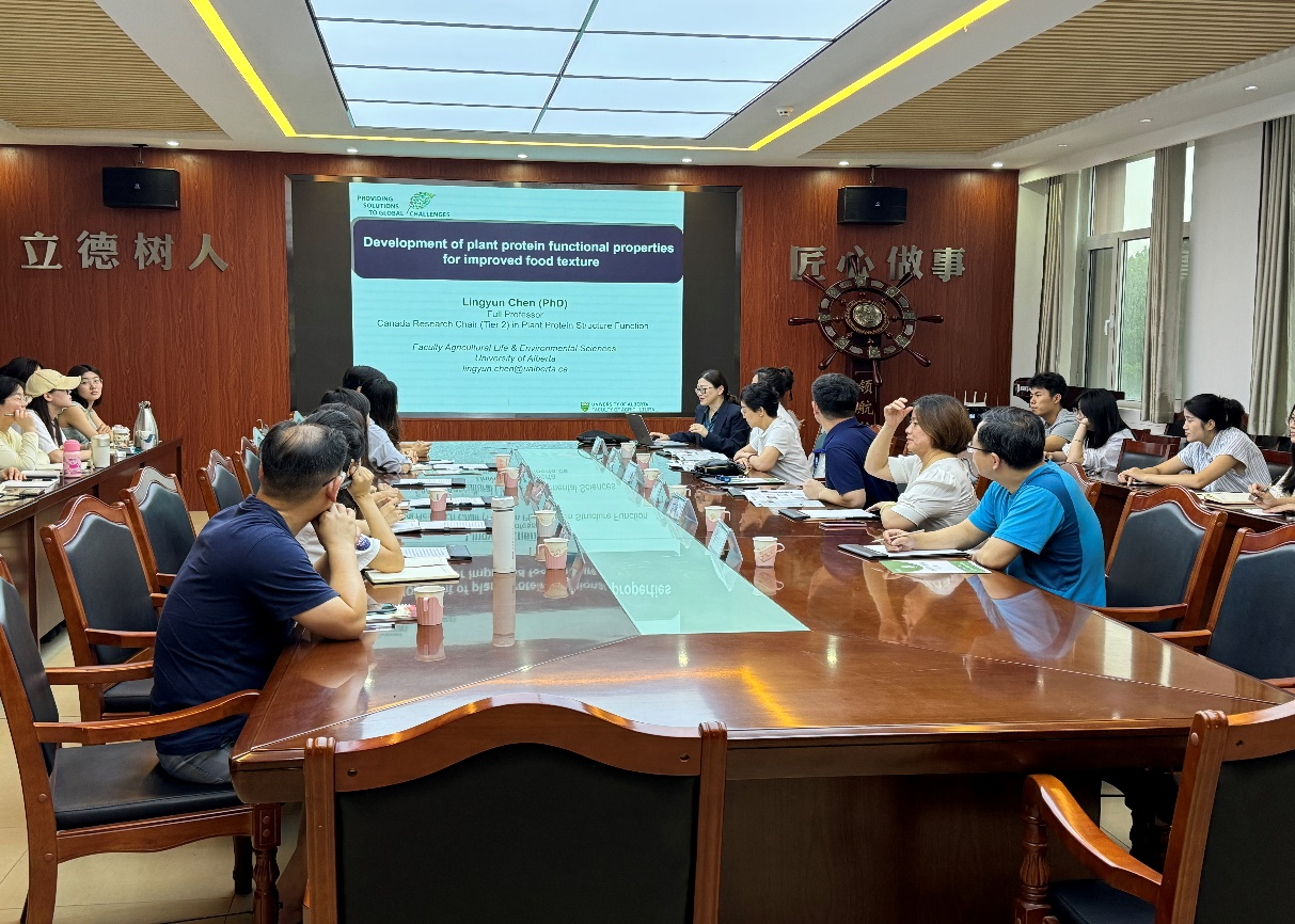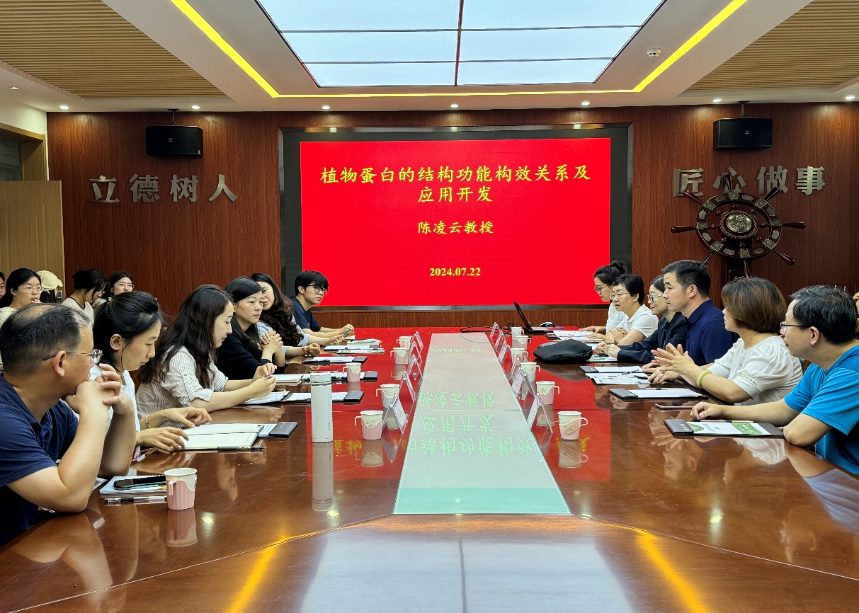 7月22日上午10点,太阳成集团tyc522cc在食品楼310会议室举办“植物蛋白的结构功能构效关系及应用开发”学术讲座交流会,邀请加拿大阿尔伯塔大学教授(加拿大首席科学家)陈凌云教授作报告与交流,并邀请中国海洋大学罗先香教授、郑浩教授、孙翠竹博士后及全院近30位师生参加。