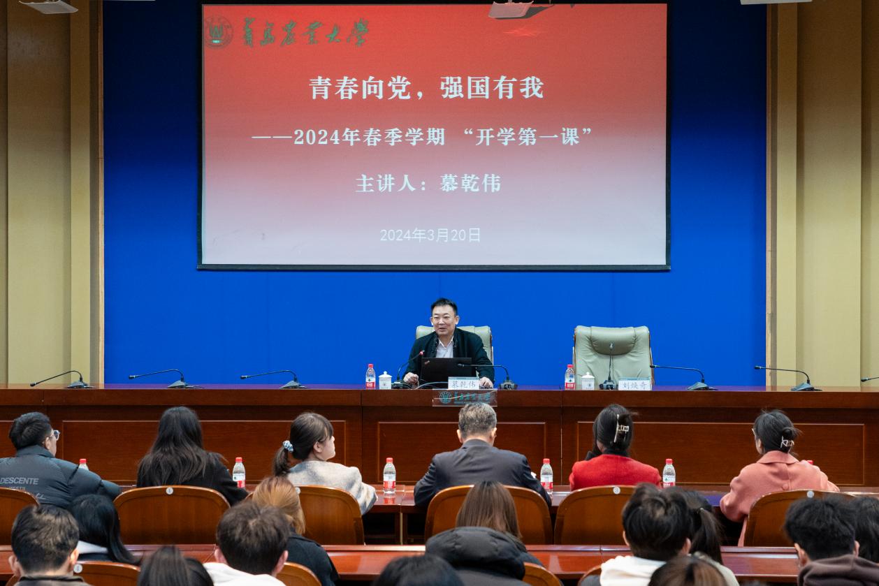 3月20日,tyc522cc太阳成集团党委委员、宣传部部长、统战部部长慕乾伟以“青春向党,强国有我”为题,在学术会馆第一报告厅为巴瑟斯未来农业科技公司、太阳成集团tyc522cc师生讲授开学第一课。巴瑟斯未来农业科技公司党委书记刘焕奇、食品科学与工程公司党委书记车广杰、两院学工办老师、员工代表参加活动,活动由刘焕奇主持。