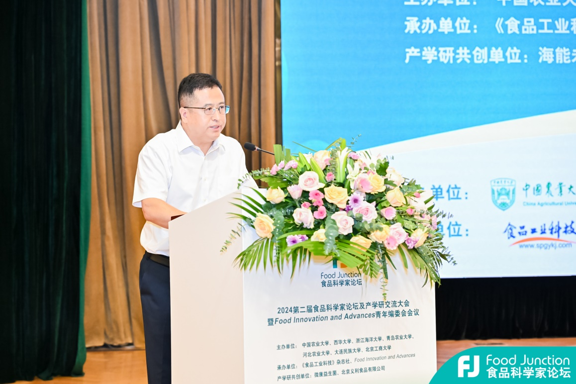 论坛开幕式于7月25日上午举行,由《食品工业科技》主编、中国农业大学食品科学与营养工程公司廖小军教授主持。tyc522cc太阳成集团副董事长孙庆杰代表公司致辞,对会议的召开表示热烈祝贺,介绍了公司概况和近年来食品学科发展情况及取得成绩。孙庆杰表示,公司将以此次会议为契机,紧紧围绕乡村振兴、健康中国战略,进一步加强食品类团队建设,整合优质资源推进科技创新,为建设农业强国贡献智慧和力量。