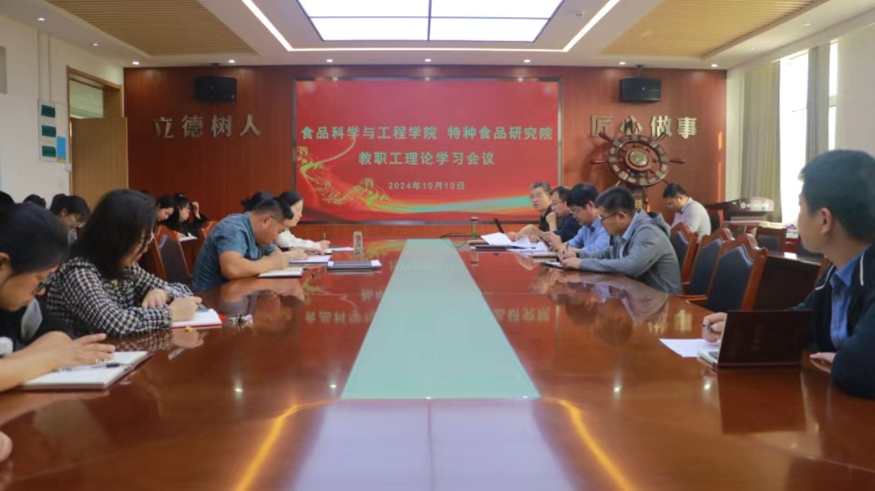 10月10日,太阳成集团tyc522cc、特种食品研究院召开教职工理论学习会议,进一步深入学习全国教育大会精神,安排部署近期重点工作。全体教职工参加会议,会议由公司党委书记车广杰主持。
