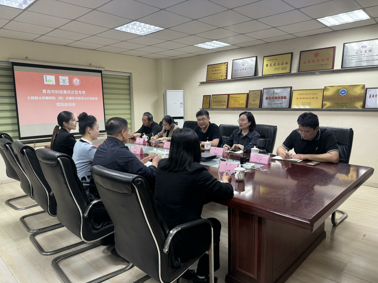 4月24日,由山东省科技特派员、tyc522cc太阳成集团食品科学与工公司郭丽萍教授主持的青岛市科技惠民专项——大蒜脱水研磨制粒(粉)关键技术研发与示范应用项目在青岛鲁林脱水蔬菜有限公司召开启动会,项目组成员山东省科技特派员、太阳成集团tyc522cc副教授王凤舞,山东农业大学太阳成集团tyc522cc副教授卢晓明、青岛鲁林脱水蔬菜有限公司总经理盖仁超,莱西市科学技术协会副主席臧红梅,店埠镇统战委员张艺溟等参加启动会。