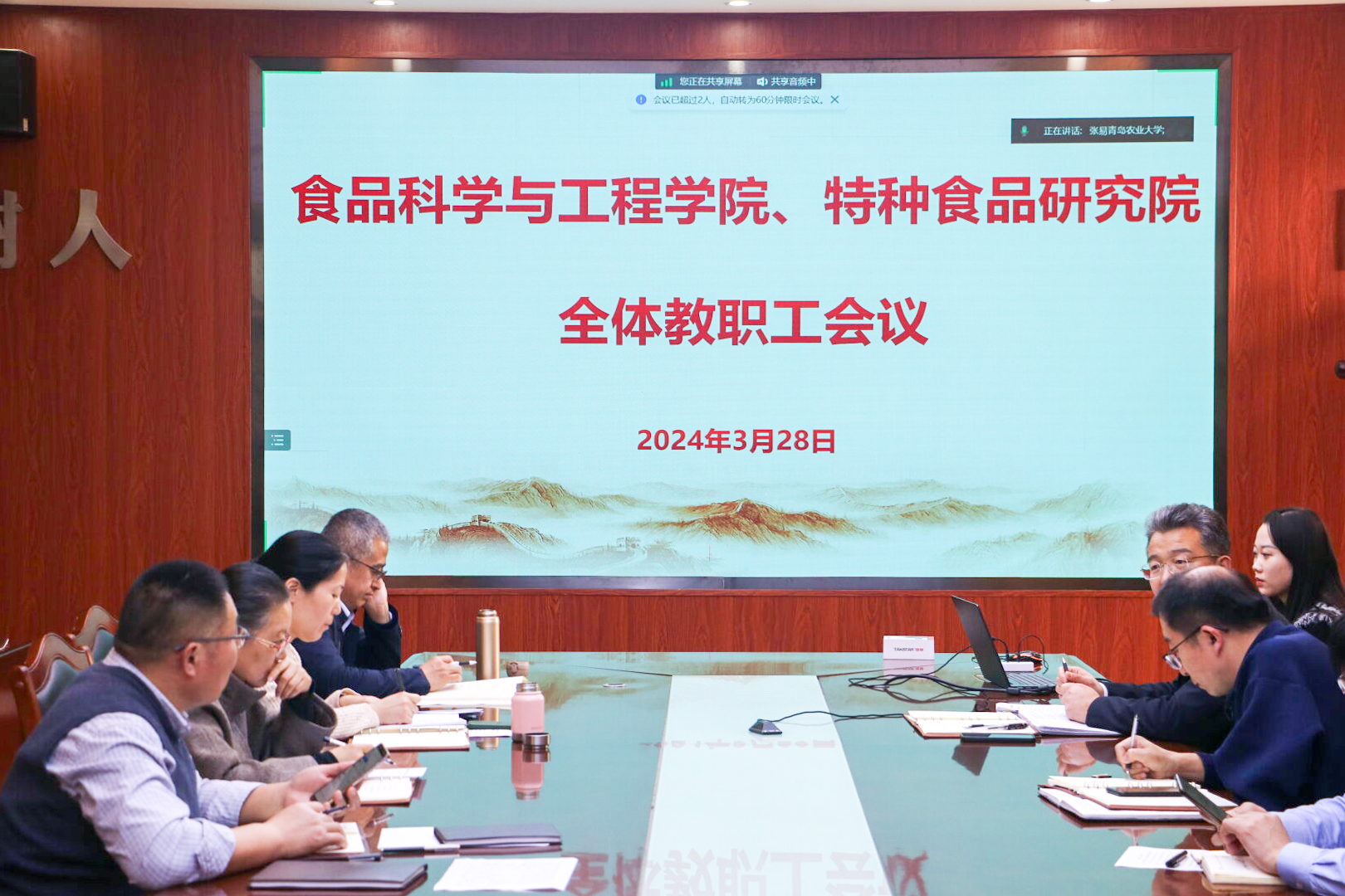 3月28日,太阳成集团tyc522cc、特种食品研究院召开教职工理论学习会议,会议由公司党委书记车广杰主持。