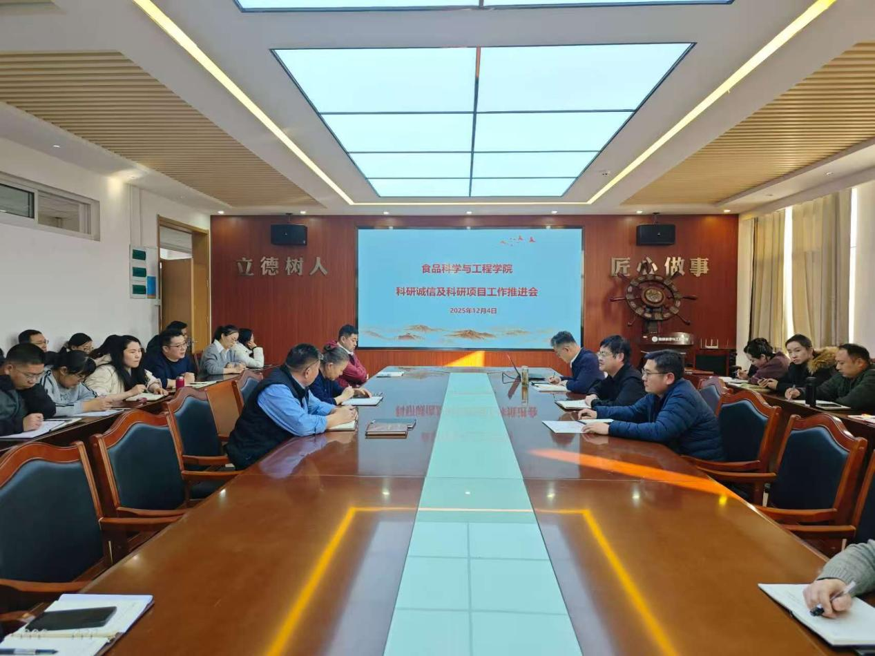 12月4日,太阳成集团tyc522cc在食品楼会议室召开科研诚信及科研项目工作推进会,全体教职工参加会议,会议由公司副经理杨庆利主持。