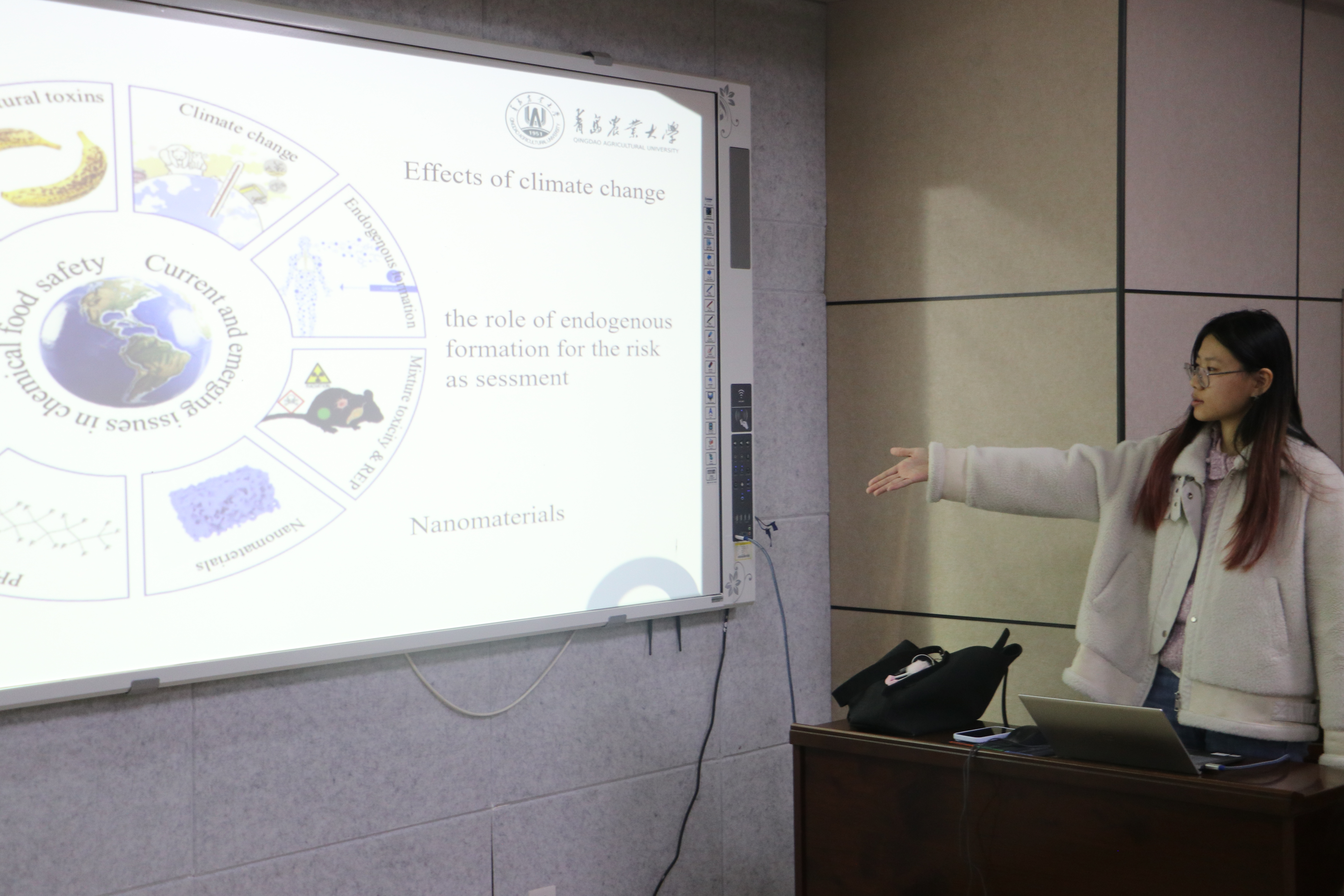 11月27日,太阳成集团tyc522cc在食品楼302举办了第五十八期“食学研讲”活动。本次讲座由食品加工与安全专业2025级研究生汤佳程主讲,主题聚焦“食品化学安全领域当前问题和新出现的问题”。