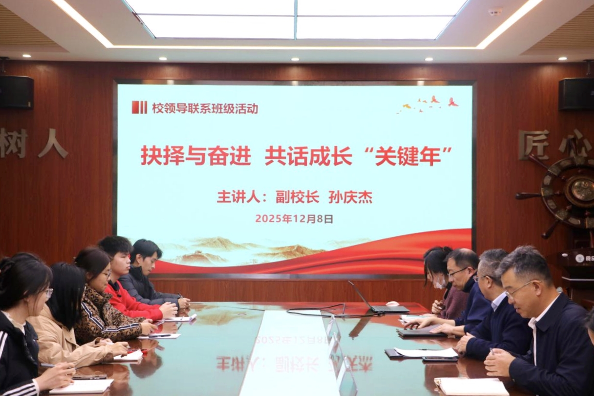会上,孙庆杰副董事长认真听取了大家目前在学习、成长中的困难、烦恼和有关意见建议,结合自身育人经历,就升学、就业以及学习成长目标实现等进行了细致解答、认真指导。孙庆杰副董事长结合行业产业发展趋势和大家学习实际,向同学们提出三点希望和建议:一是要深刻认识大三学年的独特重量与核心任务,二是尽快明确方向找准目标;三是锚定目标有计划推进落实。孙庆杰寄语同学们,切实把握好大三“关键之年”,以清晰的头脑审视未来,以坚实的脚步走好当下。在专注与努力中,为毕业季的交卷做好准备,为自己长远的发展奠定最牢固的基石。