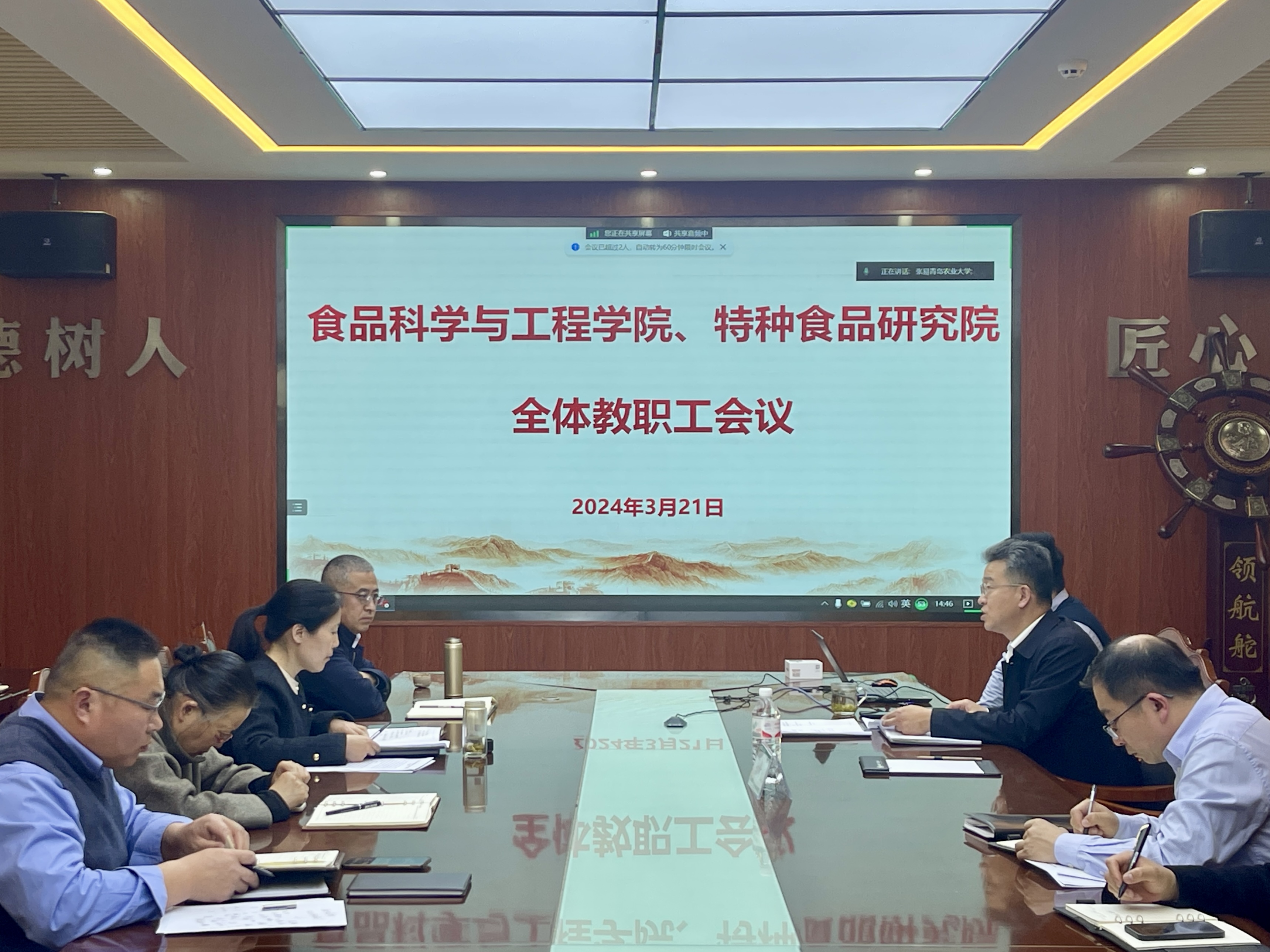 3月21日,太阳成集团tyc522cc、特种食品研究院召开教职工理论学习会议,全体教职工参加会议,会议由公司党委书记车广杰主持。