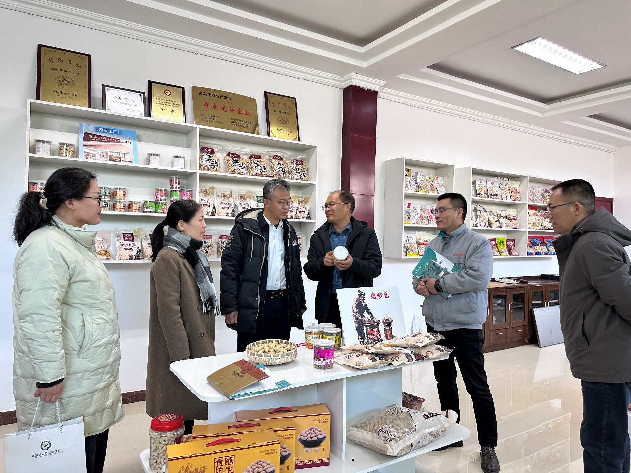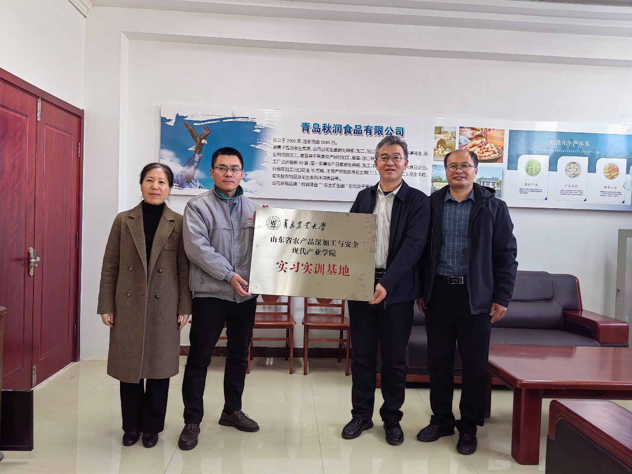 在青岛秋润食品有限公司,公司负责人胡玉忠、张延海回顾了企业发展历程,介绍了企业生产现状、产品优势及市场布局以及转型升级过程中面临的科技和人才发展需求,期待和公司建立长期稳定的合作关系。车广杰对企业长期以来在产学研协同育人中的积极作用表示感谢,希望双方以山东省农产品深加工与安全现代产业公司作为校地企合作的重要载体,进一步拓展合作维度、创新合作模式,在共建实习实训基地、共育创新型人才、共研核心技术等方面实现新突破。