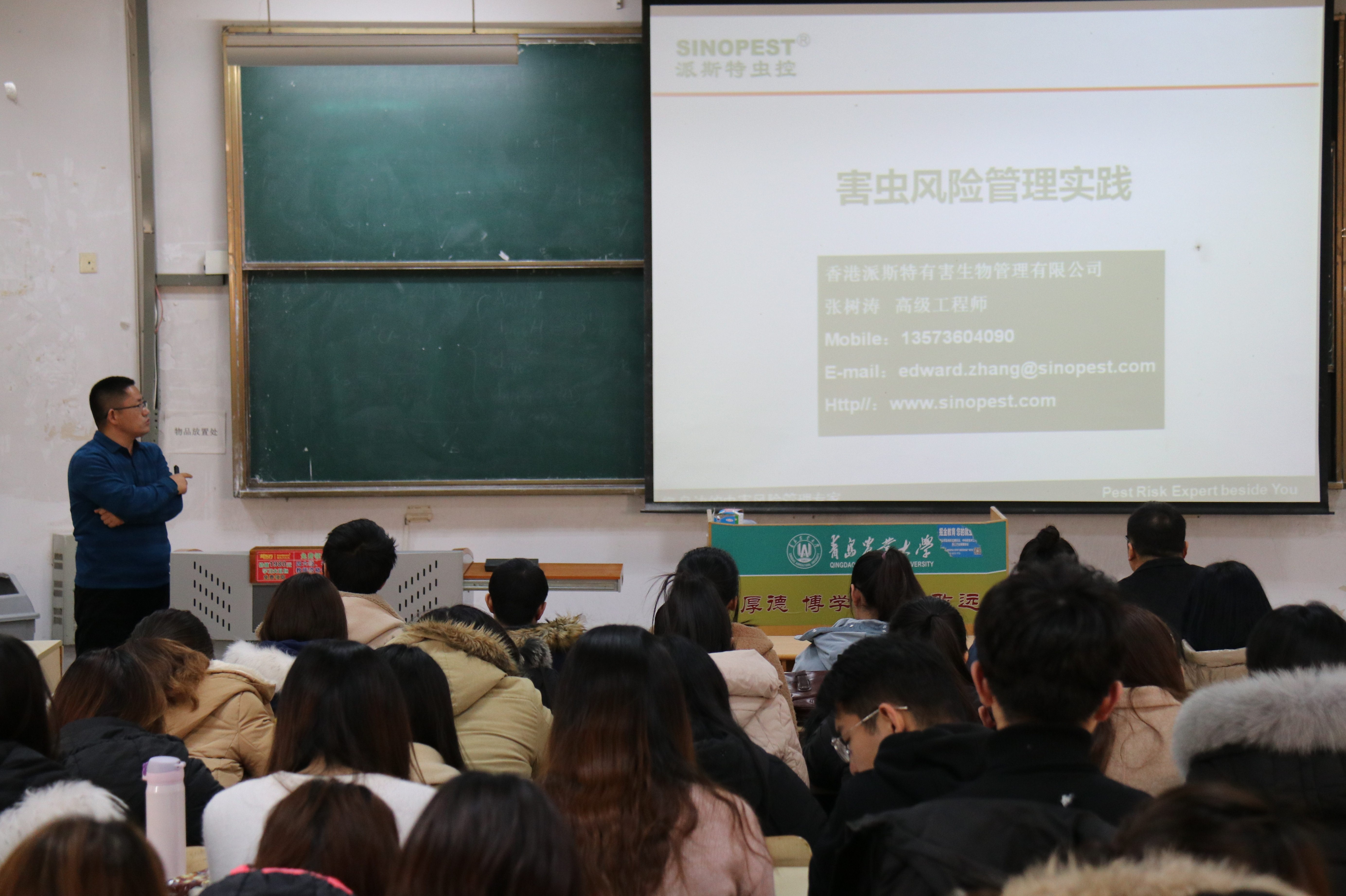 傅鹏结合自己工作经历,为同学们分析了当前就业形势、企业需求,同时对全体同学提出五点建议:一要做好学习笔记,学会总结归纳;二要学会帮助和拒绝别人;三要学会人际沟通技巧;四要学会团结协作;五要沉心静气,做好自己的事情。张树涛在讲解中结合近几年的食品安全事件与自己所从事的工作,为同学们介绍了虫害风险管理流程、虫害风险识别及虫害识别解除等专业知识,要求全体员工在创业过程中做好吃苦和失败两手准备、要坚持不懈地做好每一件事情,希望全体员工积极响应国家创新创业政策,满怀信心,勇于奋斗,在创新创业的大潮中闯出一片属于自己的天地。