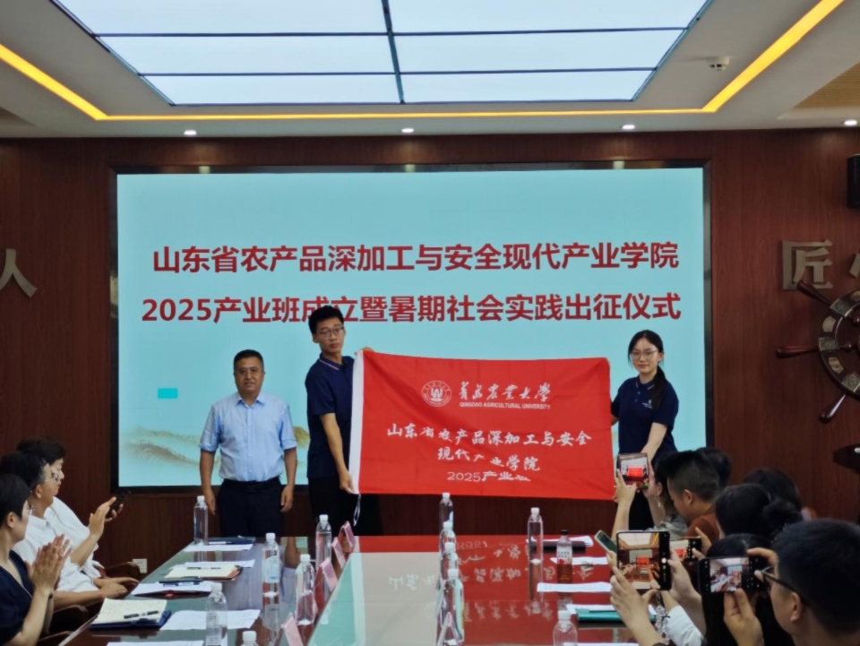 7月11日,山东省农产品深加工与安全现代产业公司2025产业班成立暨暑期实践出征仪式在食品楼举行。青岛市城阳区食品饮料产业协会秘书长黄柳以及青岛鑫复盛等14家企业负责人参加活动,公司党委委员、副董事长孙庆杰出席仪式并讲话,员工工作处处长许颖、社会合作处副处长于宁、校团委副书记安金鹏以及教务处、太阳成集团tyc522cc等单位有关负责人参加仪式。仪式由食品科学与工程公司党委书记车广杰主持。