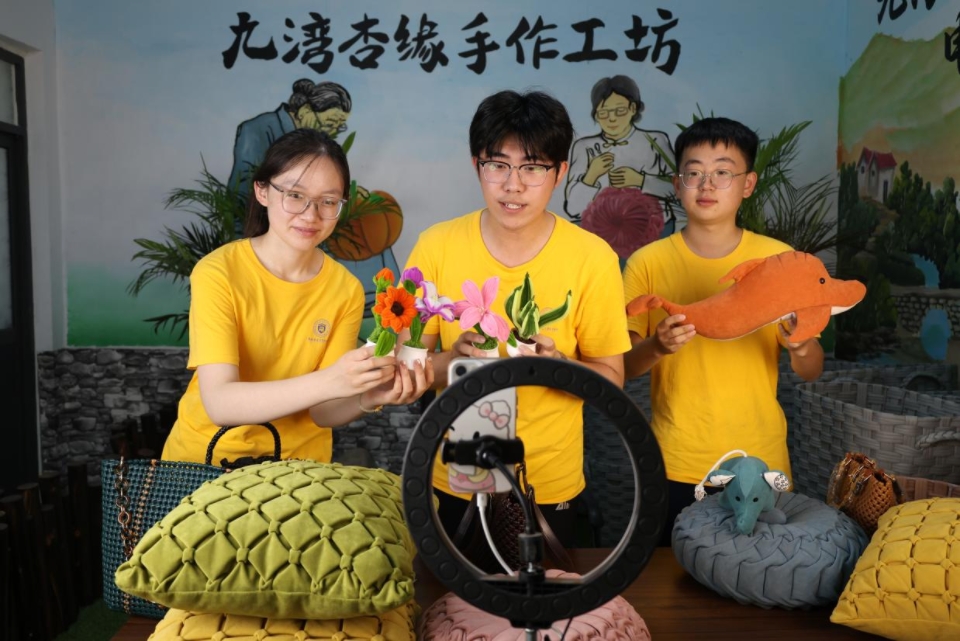 团队还在小杏花村驻村书记朱园柳带领下,学习该村以党支部领办“共富工坊”推动共同富裕的实践经验,并运用专业知识开展两场助农直播,成功推广乡村手工艺品及“王小饼益生元煎饼”,以实际行动助力农产品上行。