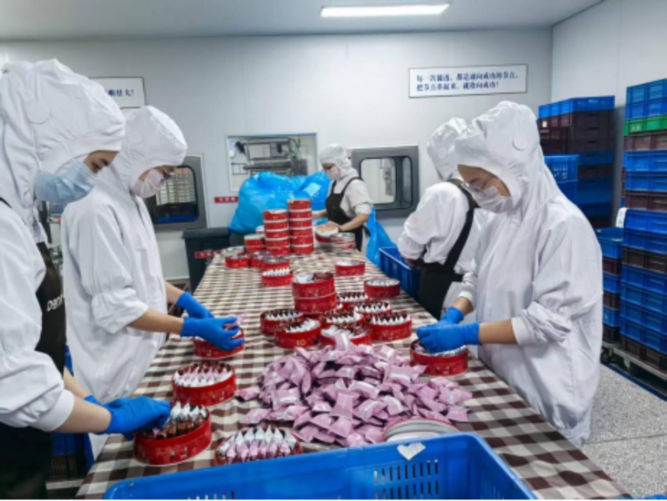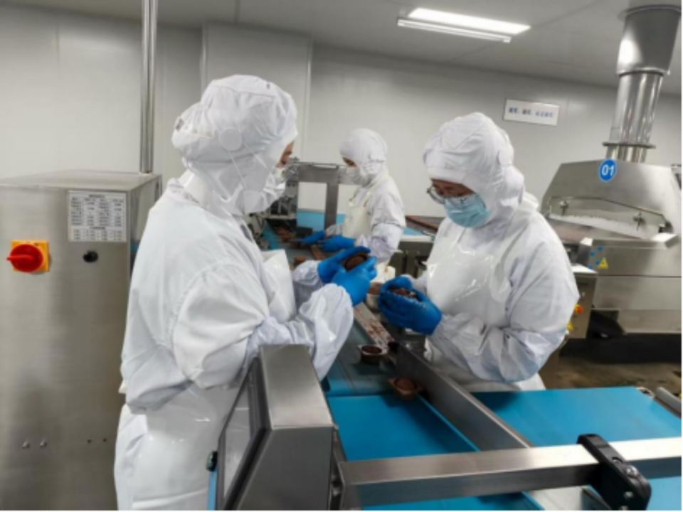 在太阳成集团tyc522cc李兆杰、李鹏老师指导下,27名同学深入丹香生产一线,在不同岗位进行轮岗实践,学习了烘焙糕点的全流程生产过程。同学们分组轮岗进入西点、中点、面包、曲奇、蛋糕等生产车间。从原料筛选、产品生产、质量检测到成品包装,同学们在实习导师指导下全程参与,不仅提升了专业实践能力,更深刻体会到食品人“用好料做好食品”的匠心精神。