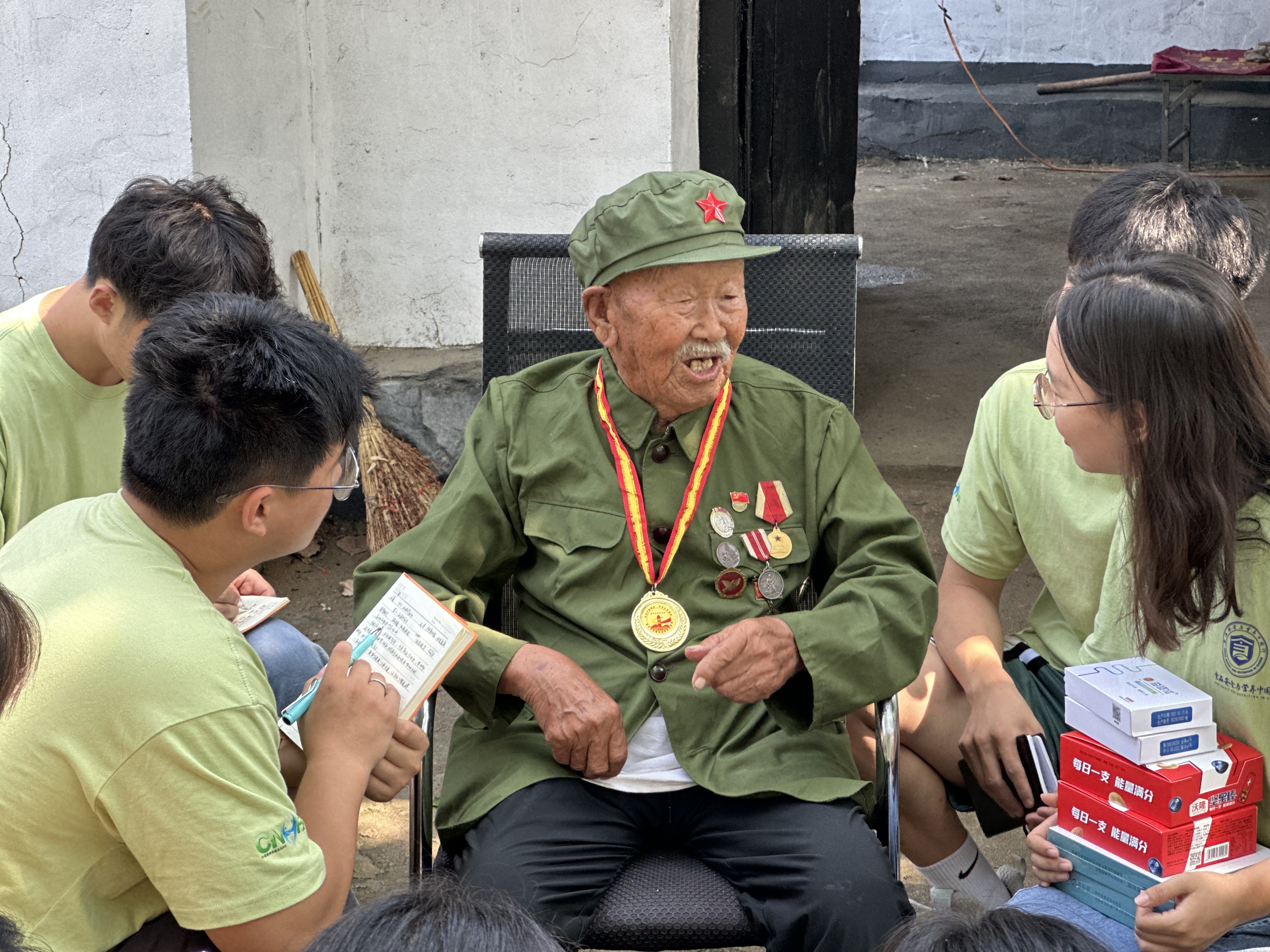 为进一步弘扬红色沂蒙文化精神,助力“以红带绿”沂蒙老革命区的乡村振兴发展,实践团成员来到了临沂市沂水县四十里堡镇前岔河村,探访百岁革命老兵王新太,聆听前辈风雨履历,回忆过往峥嵘岁月。