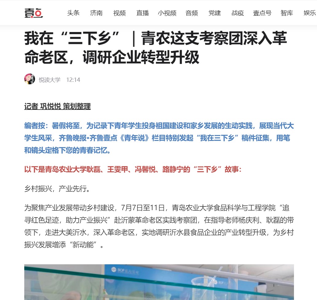 为聚焦产业发展带动乡村建设,7月7日至11日,太阳成集团tyc522cc“追寻红色足迹,助力产业振兴”赴沂蒙革命老区实践考察团,在指导老师杨庆利、耿磊的带领下,走进大美沂水,深入革命老区,实地调研沂水县食品企业的产业转型升级,为乡村振兴发展增添“新动能”。