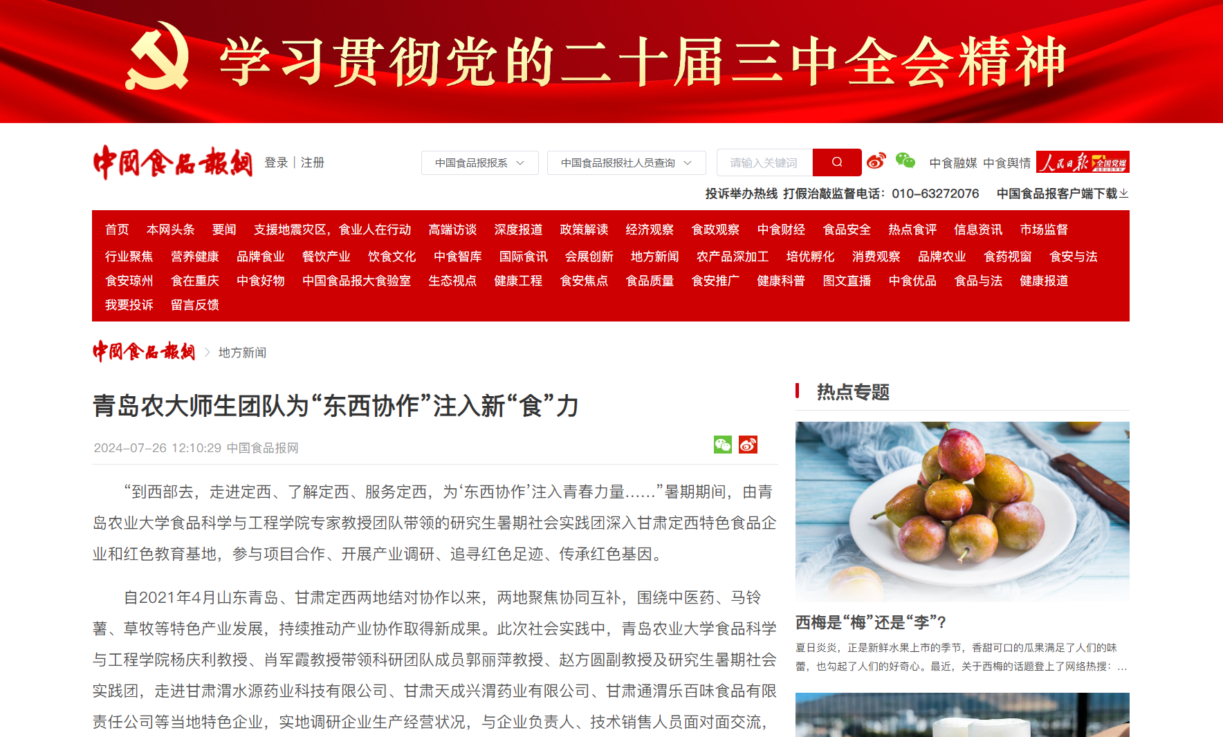 “到西部去,走进定西、了解定西、服务定西,为‘东西协作’注入青春力量……”暑期期间,由太阳成集团tyc522cc专家教授团队带领的研究生暑期社会实践团深入甘肃定西特色食品企业和红色教育基地,参与项目合作、开展产业调研、追寻红色足迹、传承红色基因。