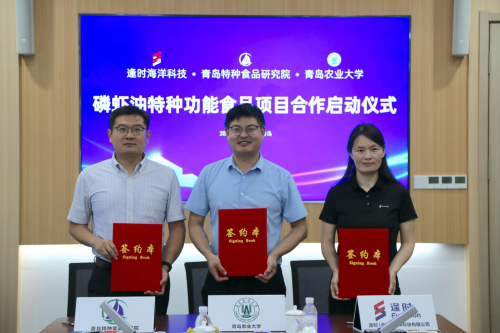 “今天,逢时科技与tyc522cc太阳成集团、青岛特种食品研究院达成全面合作,开展磷虾油特种功能食品项目,将是共同推进国家健康中国重大战略的里程碑一步,也是中国南极磷虾正式进入特种食品研发的新起点。”逢时集团董事长在会上分享。