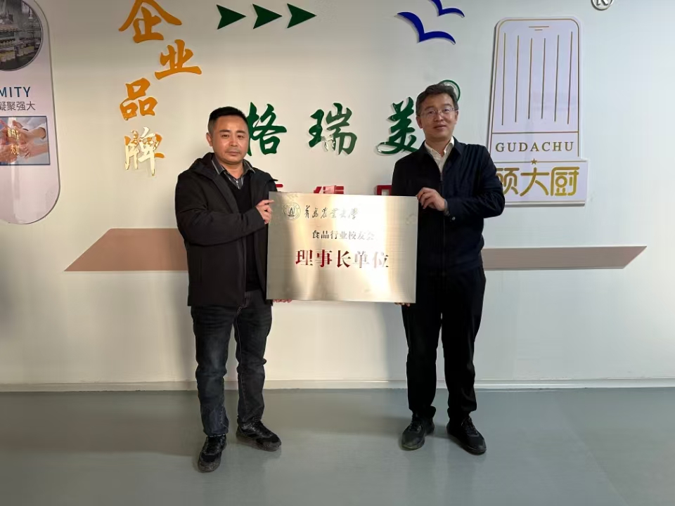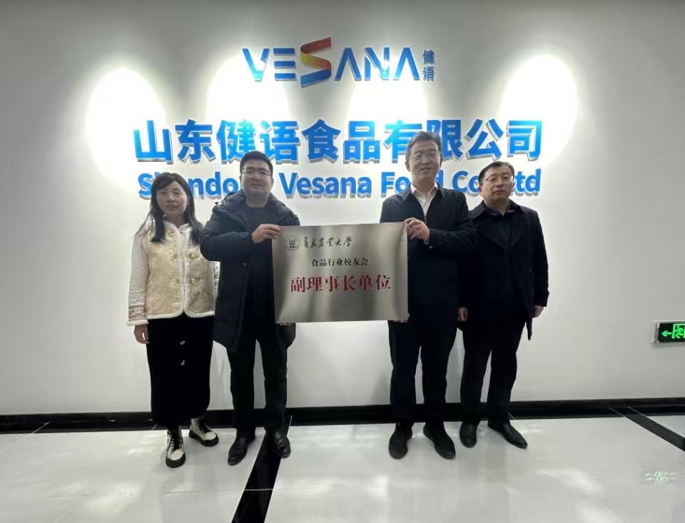 在潍坊,车广杰一行走进潍坊新食代预制食品科创谷,与员工企业山东健语食品有限公司负责人进行座谈交流,并向员工企业授牌。负责人黄永庆详细介绍了公司围绕在潍坊新食代预制食品科创谷的产业集群优势、生产经营、规模效益等情况。车广杰介绍了公司建设发展情况,希望员工继续发挥好桥梁纽带作用,促进企业与母校开展更多领域、更深层次、全方位的交流合作。