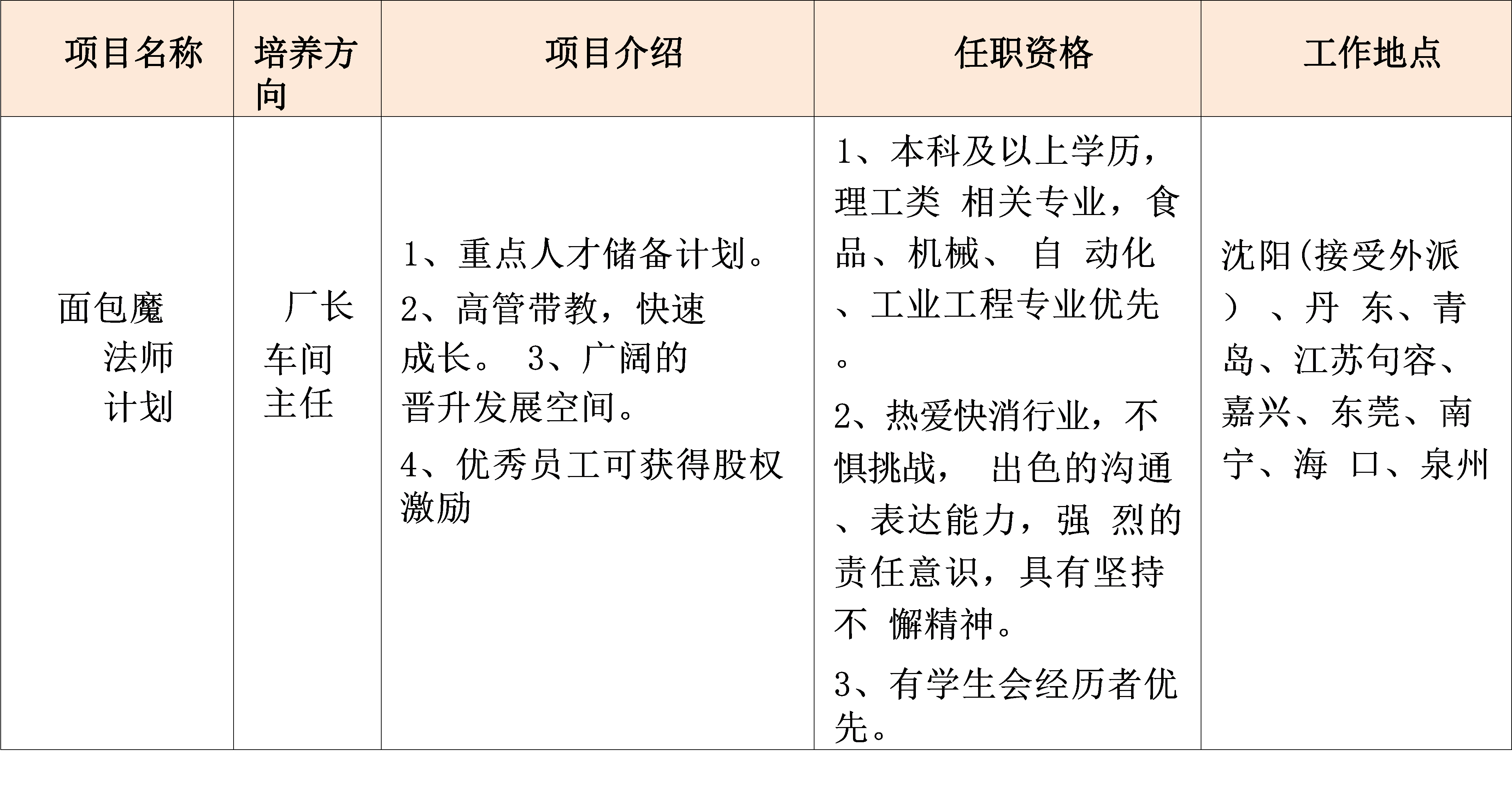 关注“桃李面包招聘 ”微信公众号,在线投递岗位 获取最新招聘信息
