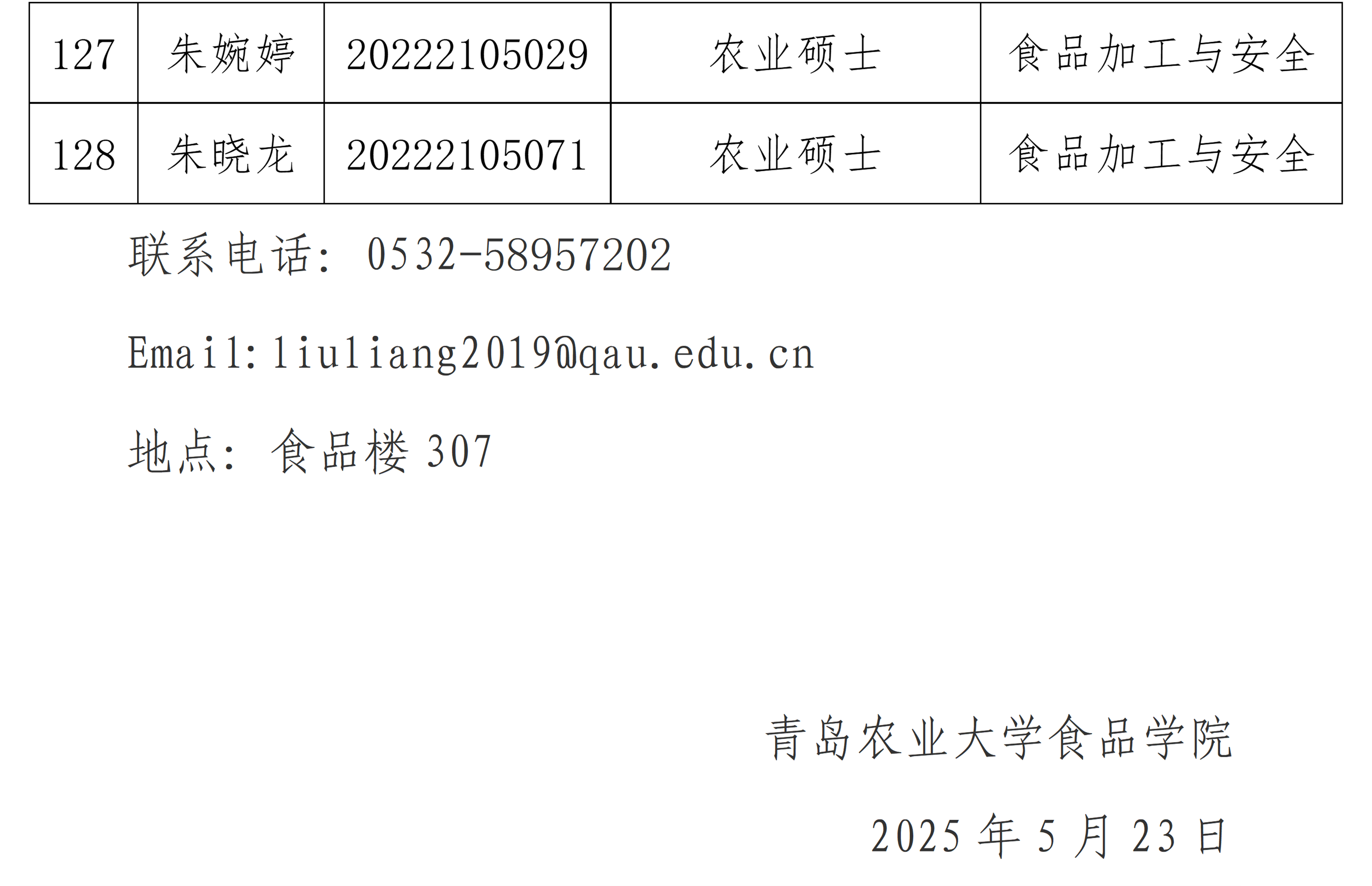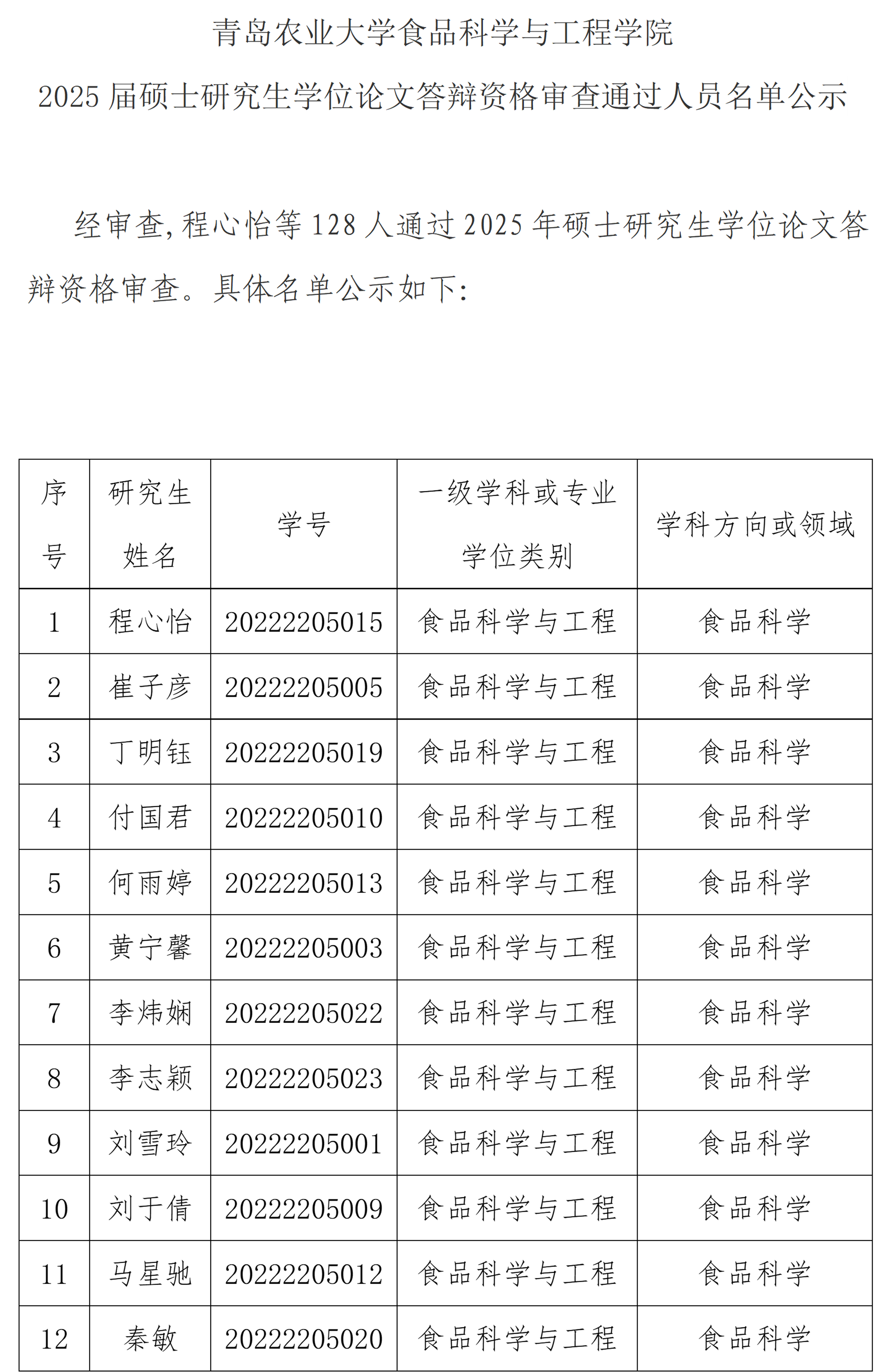 太阳成集团tyc522cc 2025届硕士研究生学位论文答辩资格审查通过人员名单公示