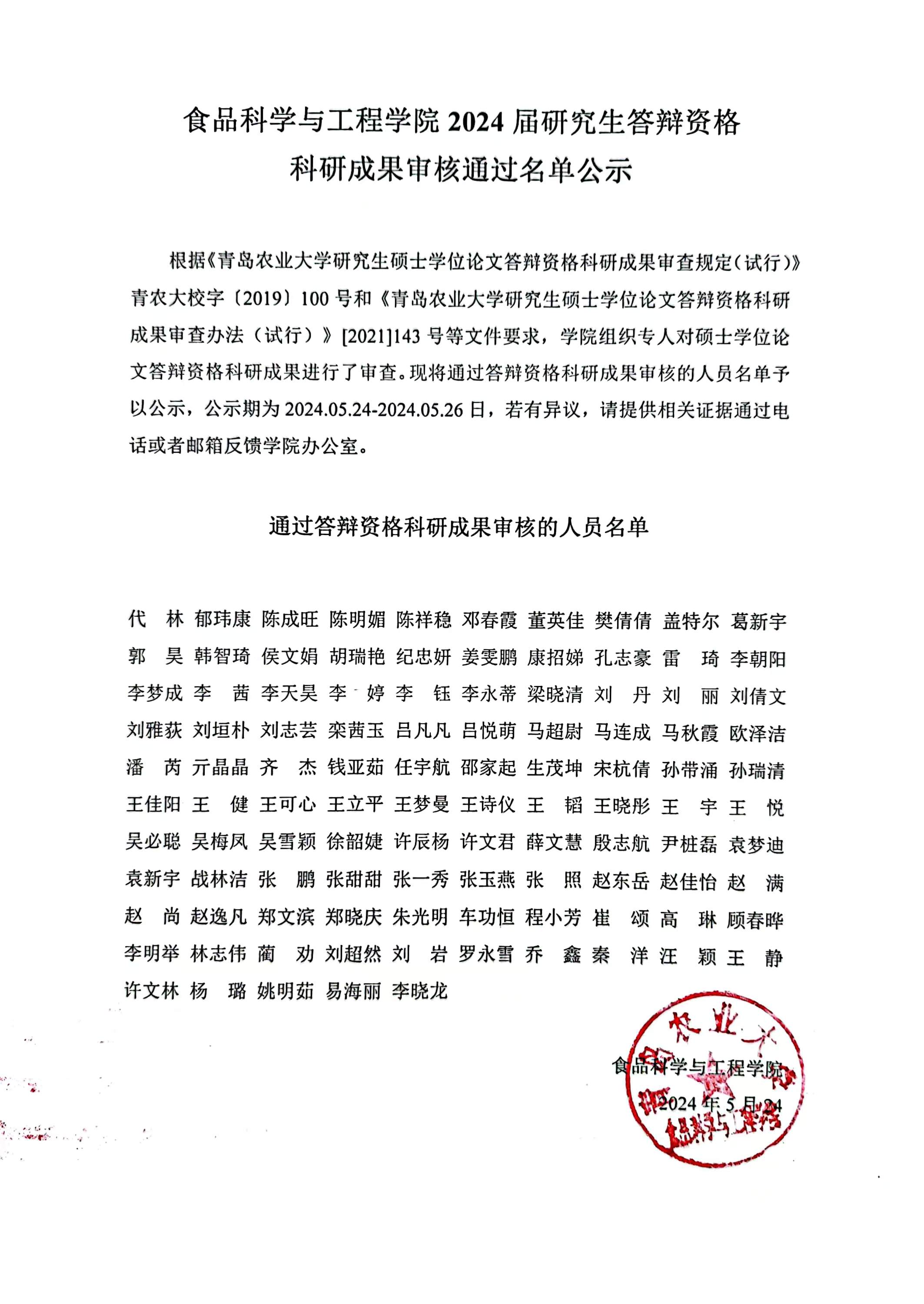 太阳成集团tyc522cc2024届研究生答辩资格科研成果审核公示