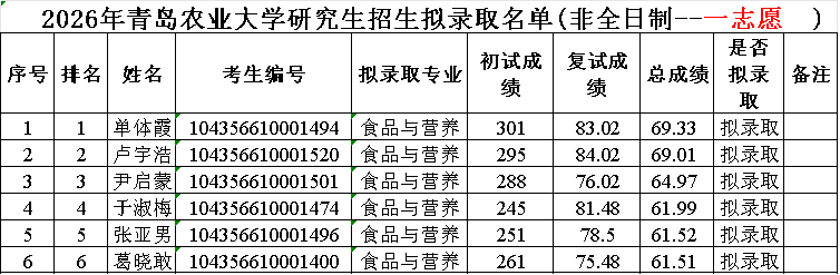 2026年太阳成集团tyc522cc研究生复试拟录取名单(全日制)