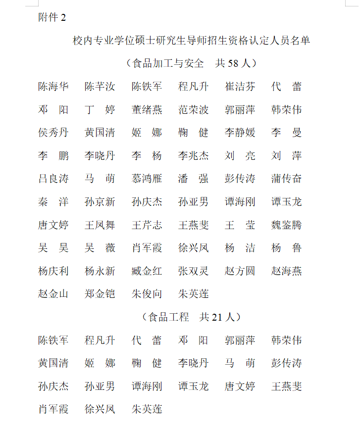 附件2:校内专业学位硕士研究生导师招生资格认定人员名单