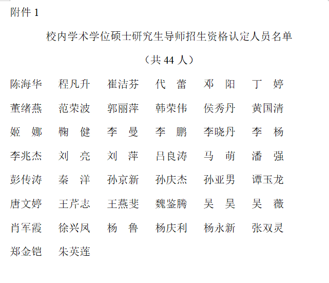 附件1:校内学术学位硕士研究生导师招生资格认定人员名单
