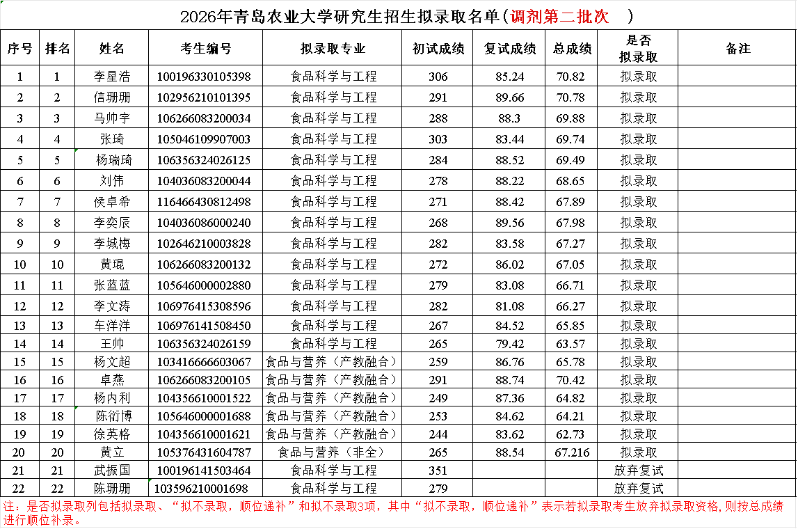 2026年研究生复试拟录取名单