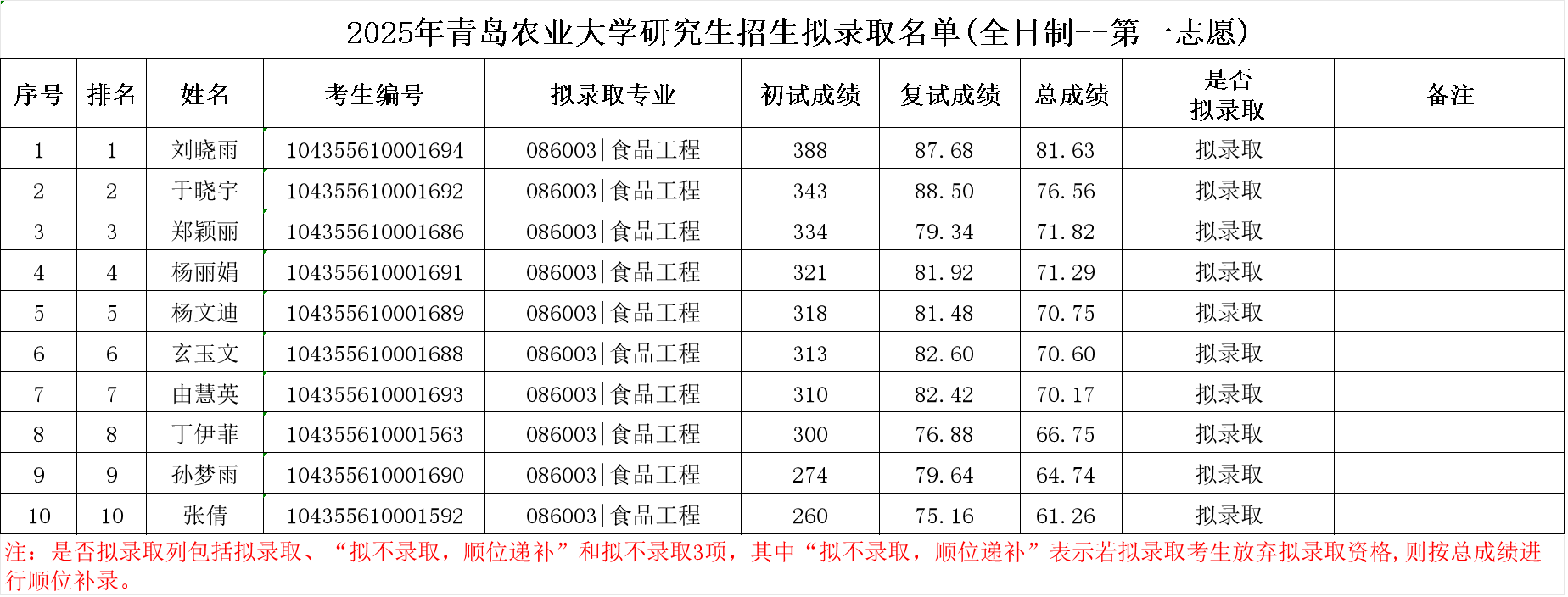 2025年tyc522cc太阳成集团研究生招生拟录取名单(全日制--第一志愿)