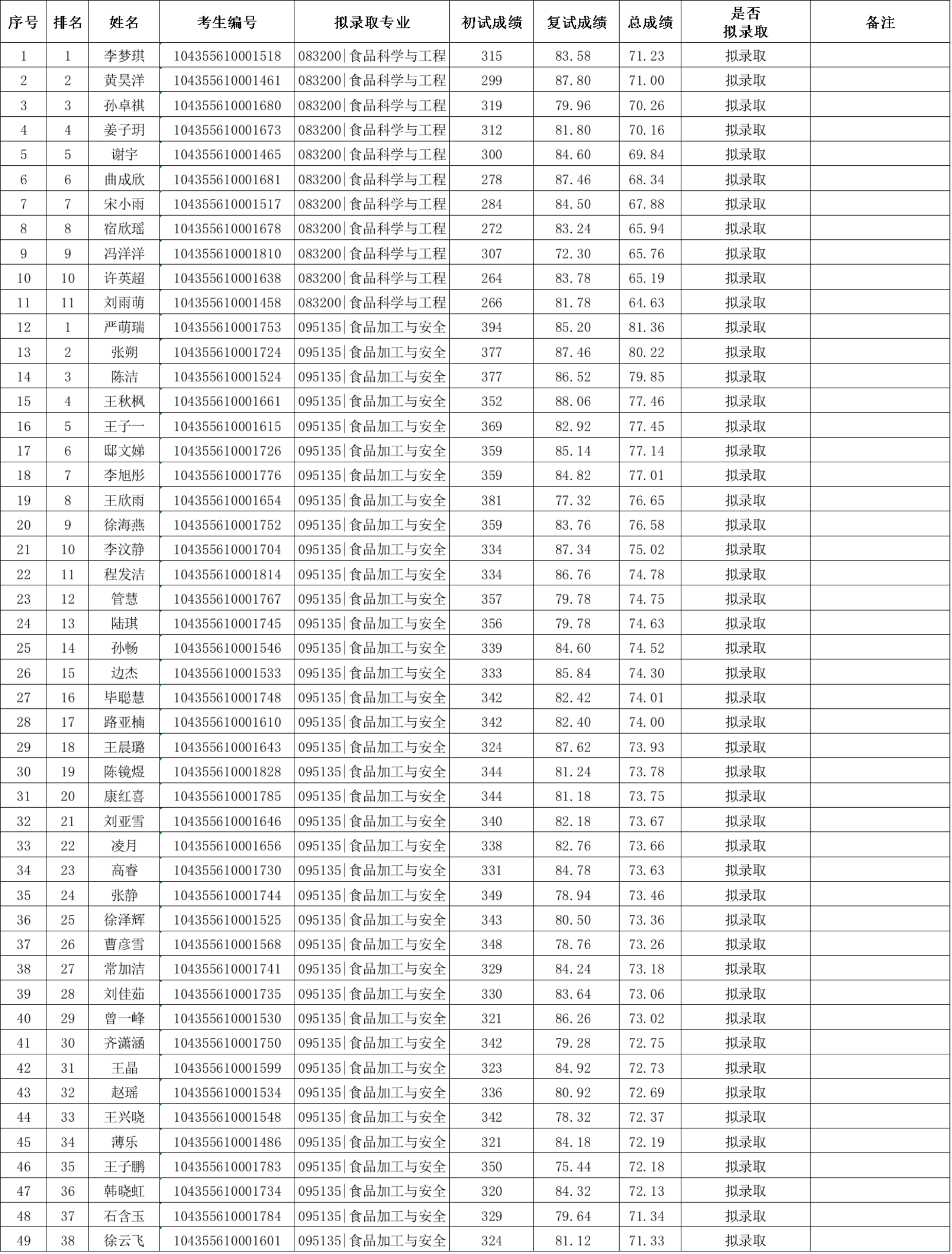 太阳成集团tyc522cc2025年食品工程专业硕士研究生复试通知