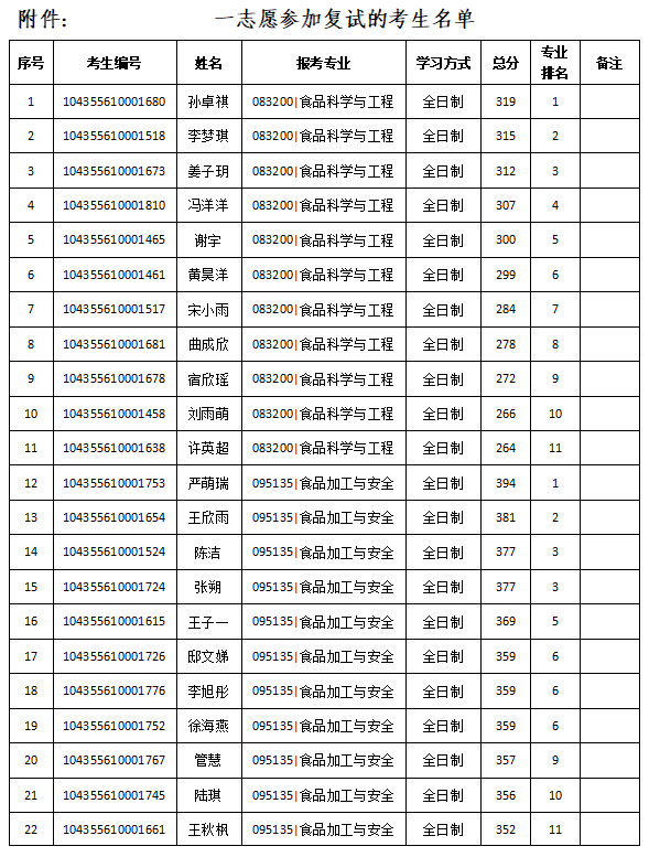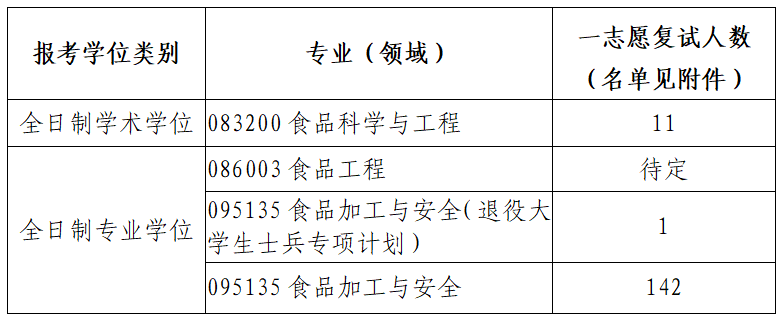 全日制086003食品工程一志愿复试人数、名单、地点等另行通知,预计复试时间不晚于4月4日。