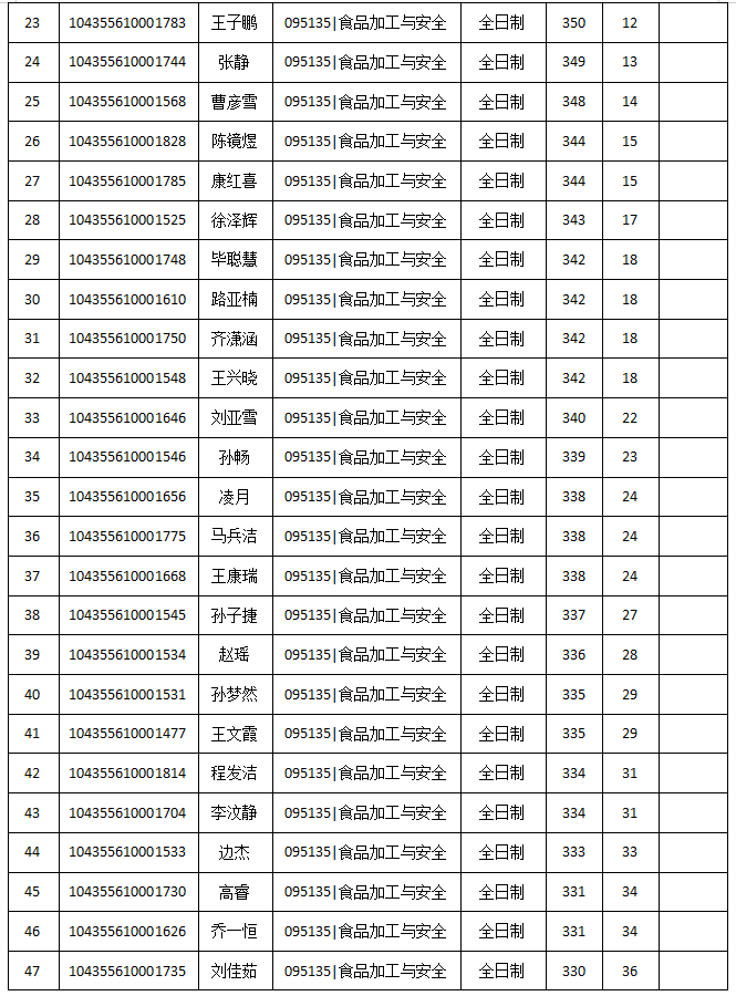 2.总成绩相同的考生排名,按照初试成绩高低排名;初试总分相同按初试英语科目成绩排名;初试总分和初试英语科目成绩均相同的按初试思想政治理论科目成绩排名。