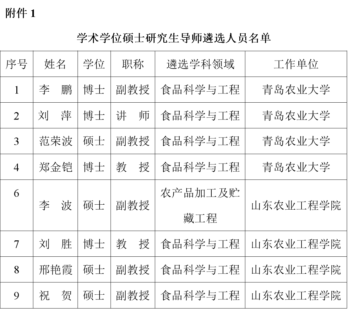 附件1:学术学位硕士研究生导师遴选人员名单