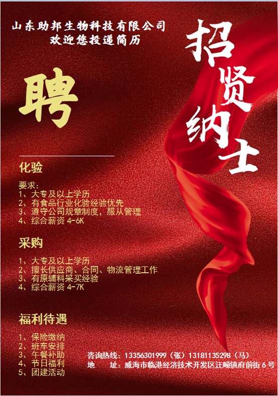 就业 5号 山东助邦生物科技有限公司招聘