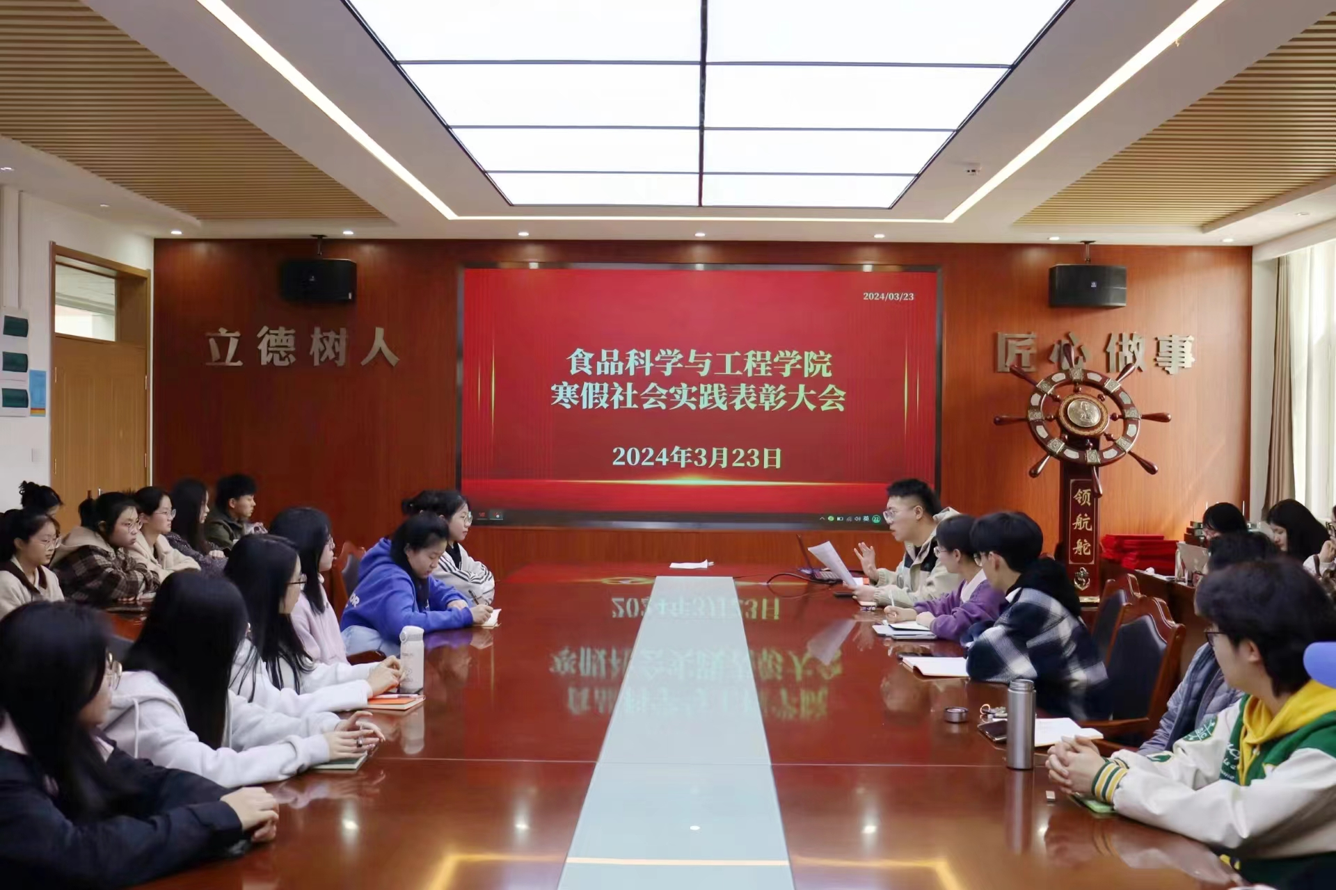 3月23日,太阳成集团tyc522cc于城阳校区食品楼310举办寒假社会实践表彰大会和经验分享会。