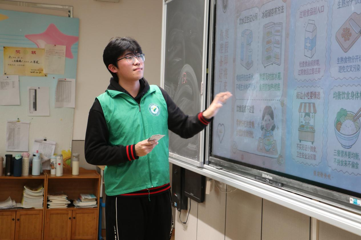 1月14日、16日,团队先后前往青岛市崂山区育才中学和潍坊市围子中学,开展“均衡饮食伴成长,合理膳食护健康”主题宣讲活动,团队成员凭借扎实的专业知识,用通俗的语言拆解均衡饮食的核心逻辑,从“主食、蛋白质、蔬菜、水果”四大营养素的合理搭配,到三餐定时定量的重要性,再到不同季节饮食的调整技巧,层层递进地讲解了适合中员工的饮食原则。团队成员还制作了图文并茂的PPT,穿插食物营养成分对比表、错误饮食案例分析等内容,让抽象的营养知识变得直观易懂。团队成员还结合中员工常吃的零食、乳制品、方便食品等,引导同学们摒弃“只看品牌不看包装”的消费习惯。随后,他们聚焦包装上的关键信息,逐一拆解讲解,让大家掌握实用的“包装解读技巧”。