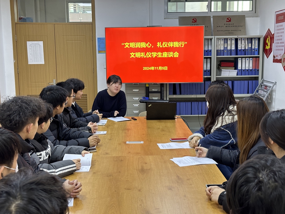 辅导员李振荣详细听取了同学们在文明礼仪方面存在的问题,并提出了要求。希望同学们能严格要求自己,养成文明行为礼仪,从身边的小事做起,争做一名文明守纪的好员工。其中员工骨干尤其要做好表率,待人礼貌,交往和谐,语言文明,使同学之间和谐共处,有序生活。