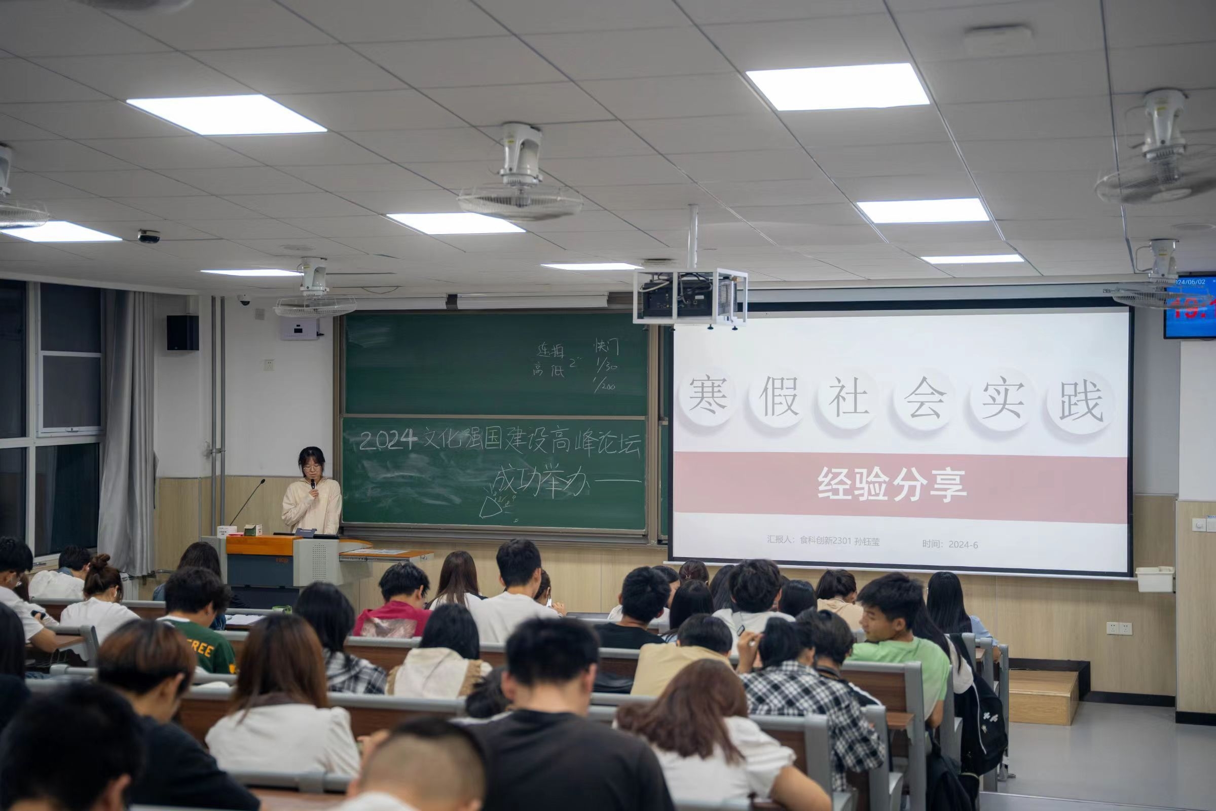 闫嘉怡以冬季食品安全为主题,向同学们介绍了通过公司与社区党委建立交流桥梁的方式,分享了在社会实践活动中的经验与心得。马艺丹和胡铭心分别从时间地点联络、小组成员任务分配以及活动结束后的总结反思等方面,向同学们分享了自己的见解。