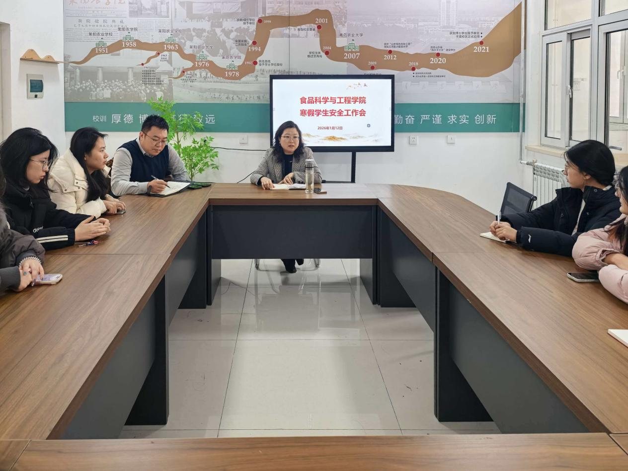 为深入了解平度校区员工学习生活情况,进一步加强学期末考风考纪教育及寒假期间平度校区员工的安全教育与管理,1月12日上午,食品科学与工程公司党委副书记、副经理王敬赴平度校区走访员工宿舍进行调研,并组织召开假期安全稳定工作会议。公司驻平度校区辅导员张易及2025级主要员工干部、省外员工代表参加会议。